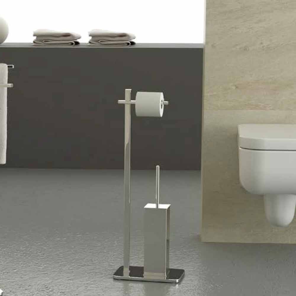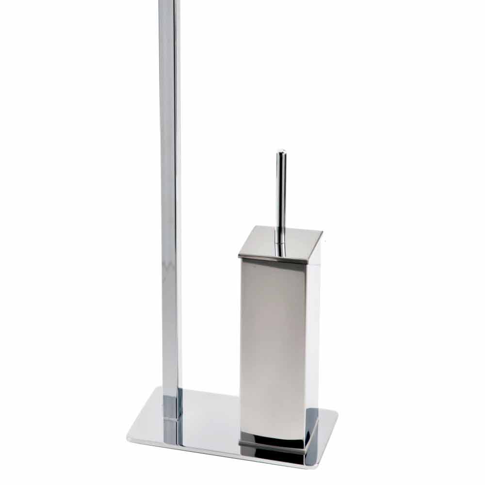 Modern free standing roll and toilet brush in chromed iron Made in Italy.