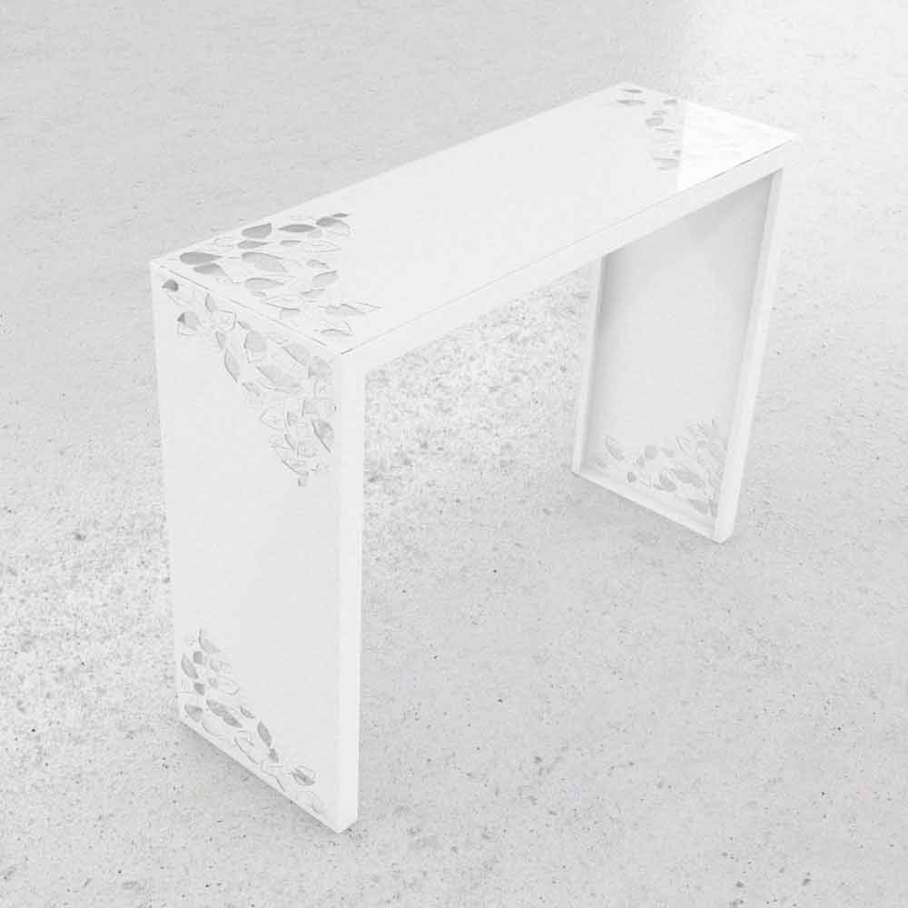 Entirely made of metal and glass, Konsolle contains its function inside its name.