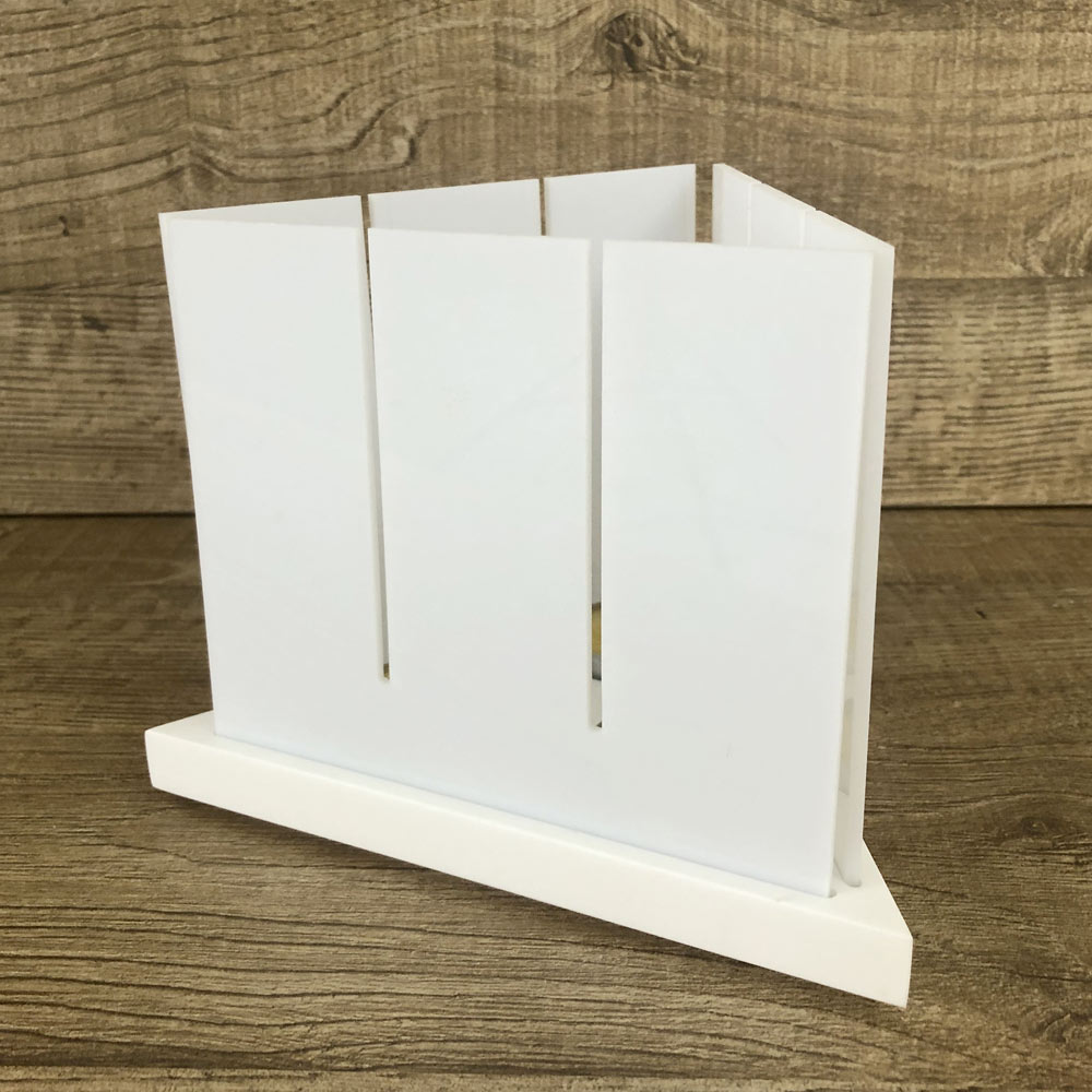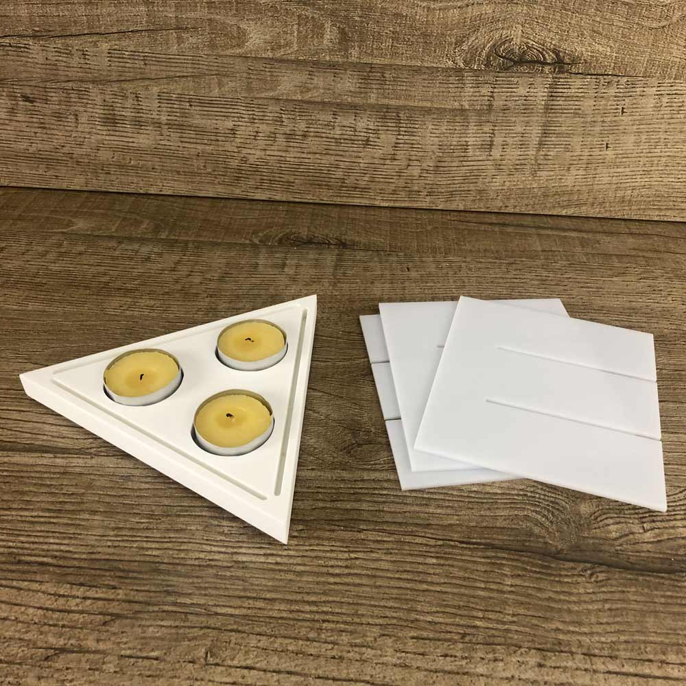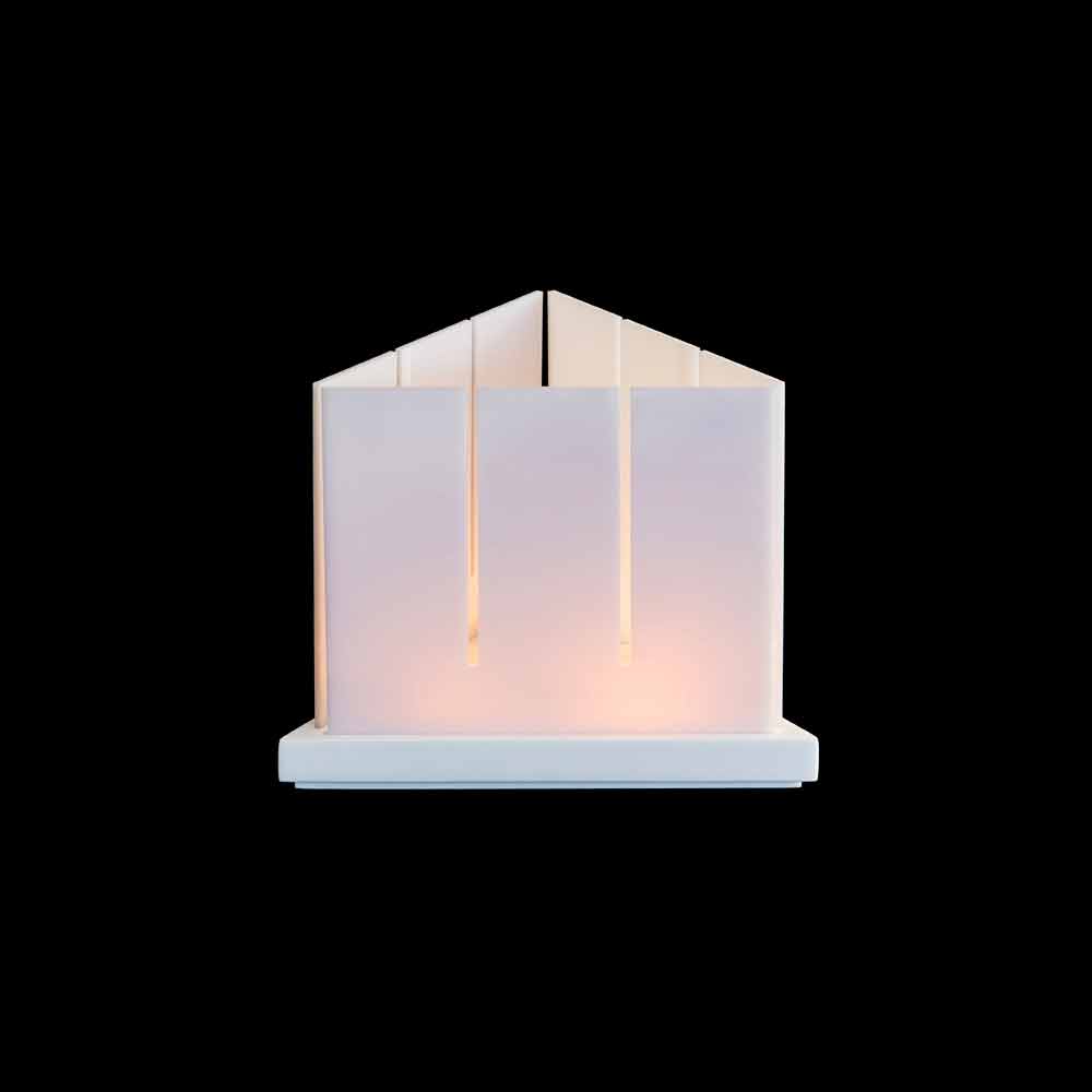 It is a triangular base lantern for three lights with three removable and windproof “opal” screens for an elegant and essential play of lights.