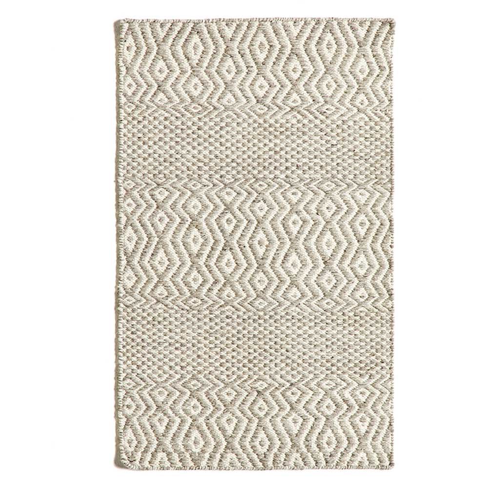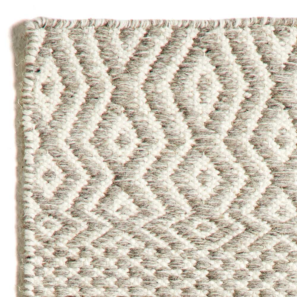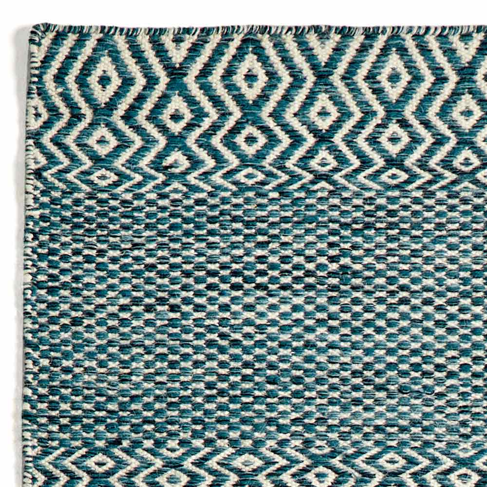 Hand-woven lounge rug in wool and cotton with patterned design.