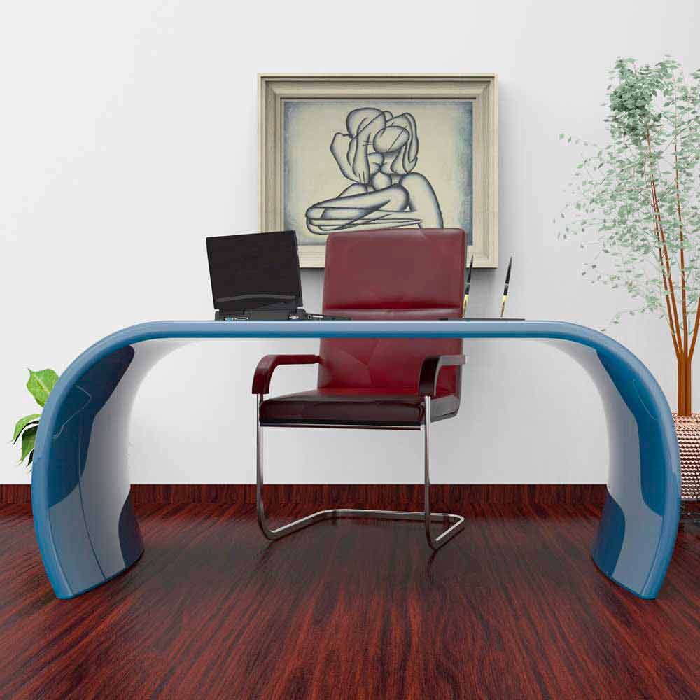 This desk, made of Solid Surface, thanks to its curved shape breaks the monotomy of the office giving us a modern and friendly environment.
