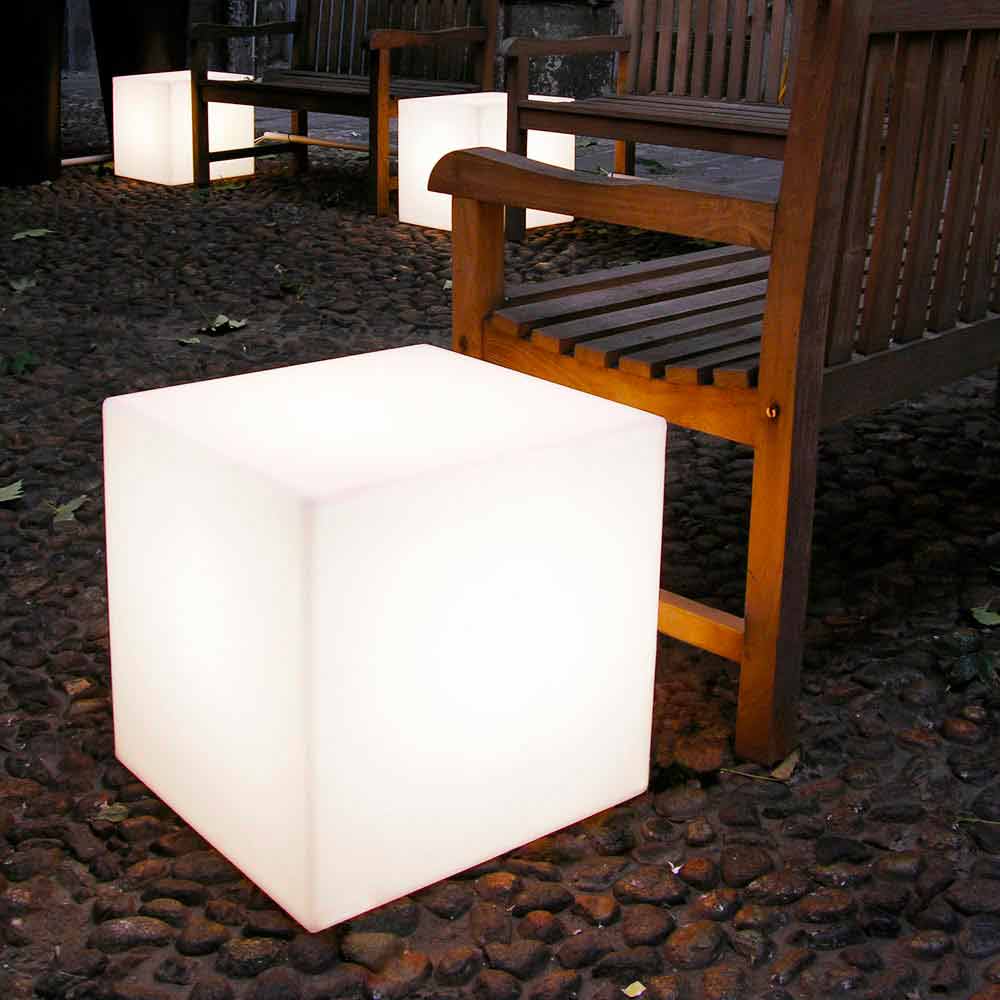 Cubo is a cube-shaped lamp for outdoor environments, perfect for illuminating gardens and terraces or for use at elegant parties and events. From the unmistakable made in Italy design, it gives a delicate and soft lighting making the atmosphere elegant and contemporary.