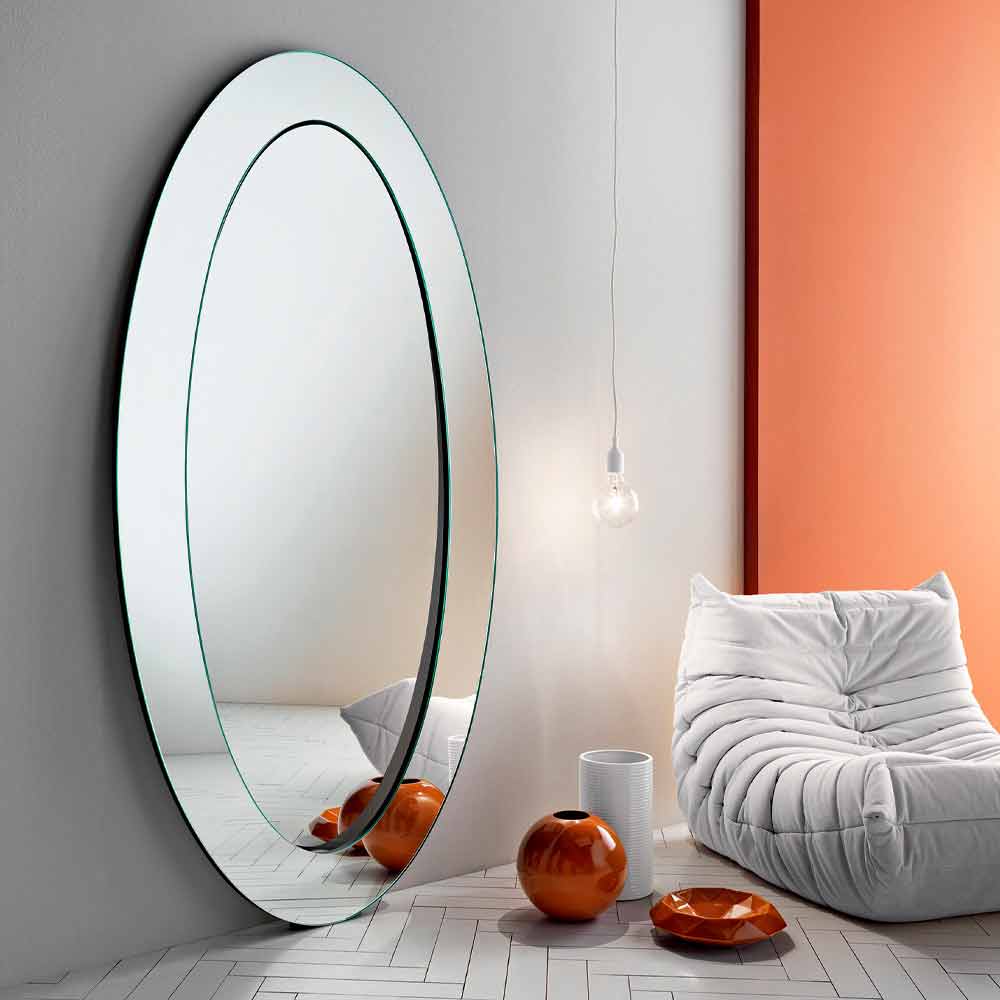 Modern Oval Free Standing Mirror with Inclined Frame Made in Italy - Salamina