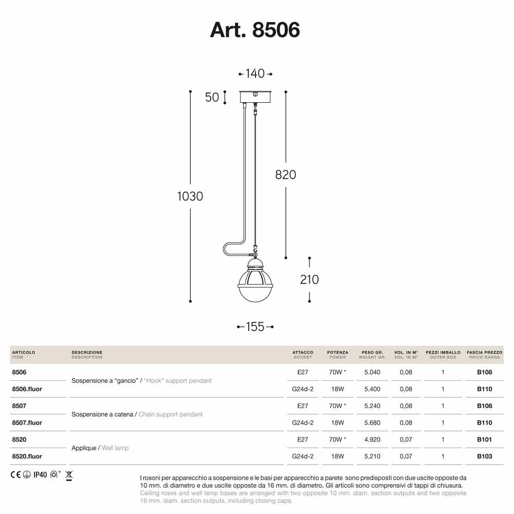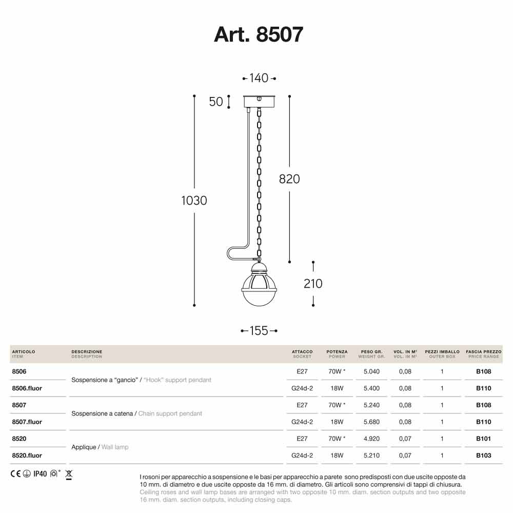 Cimosa is available with hook or chain support and with different sockets: