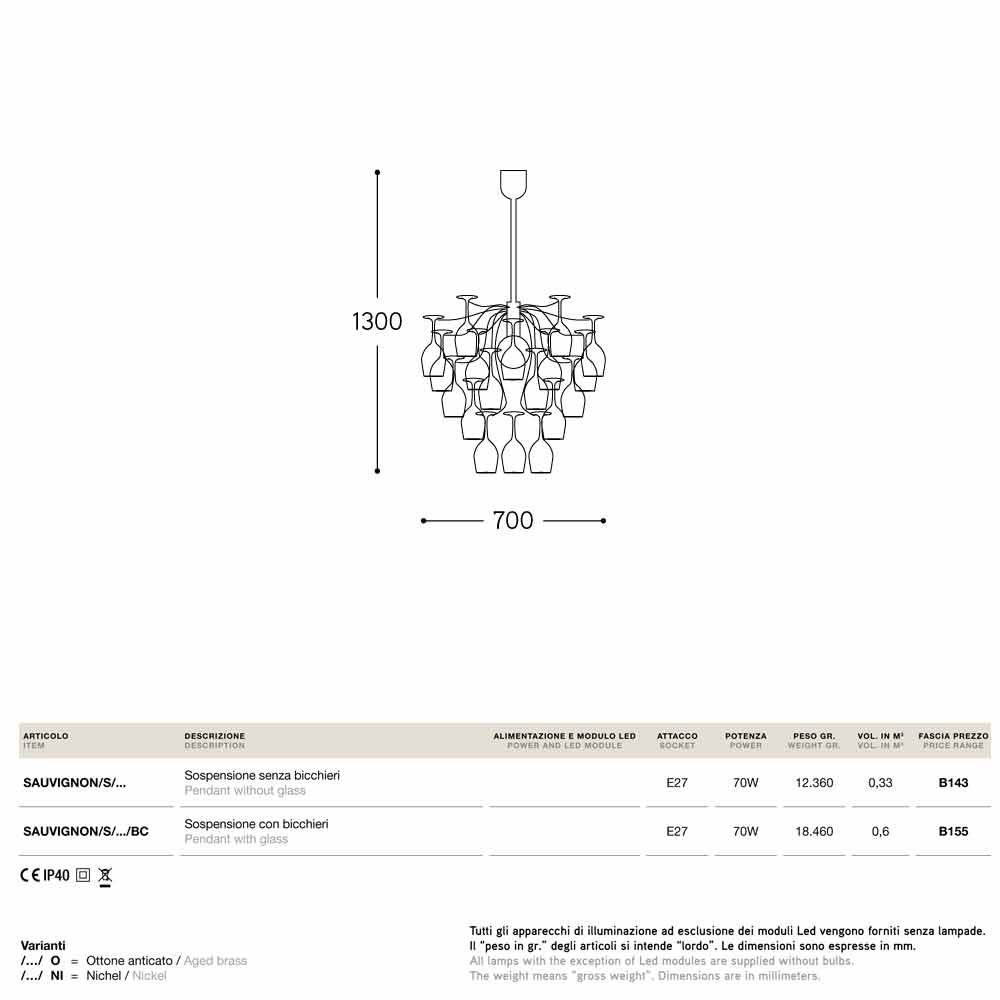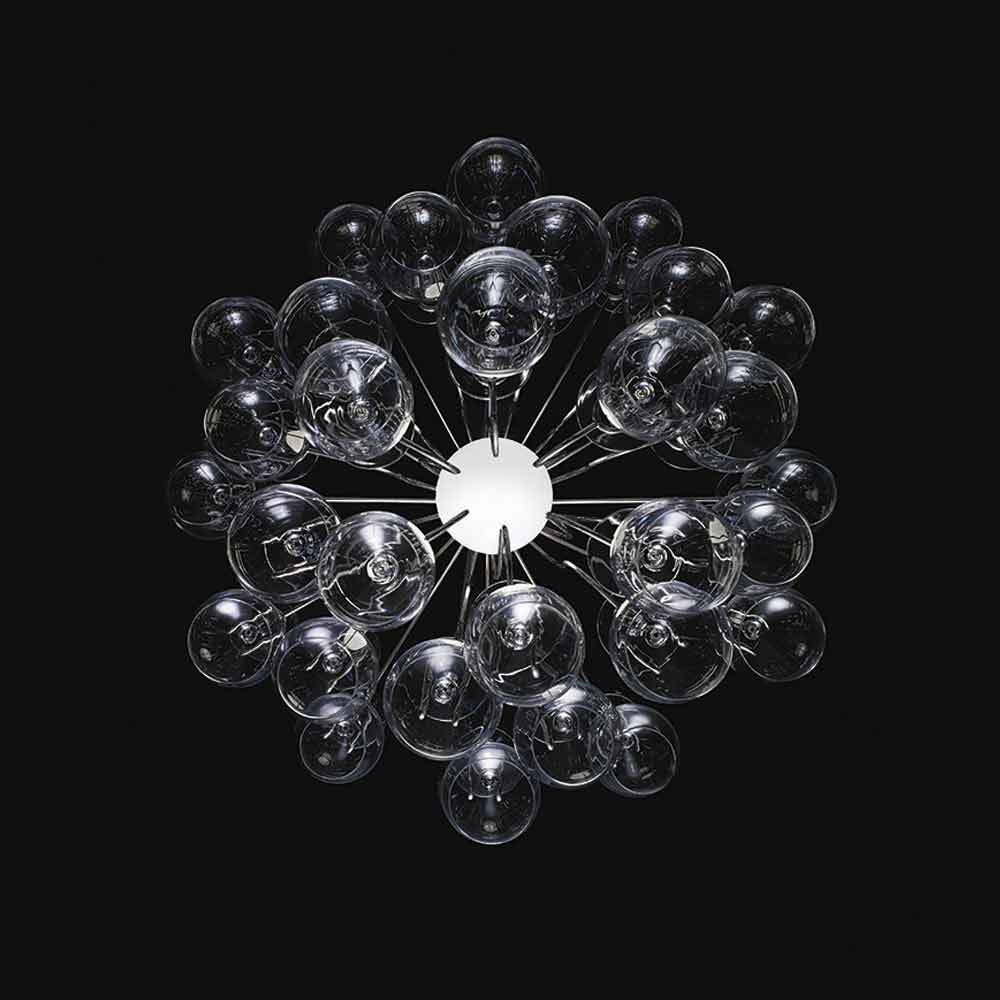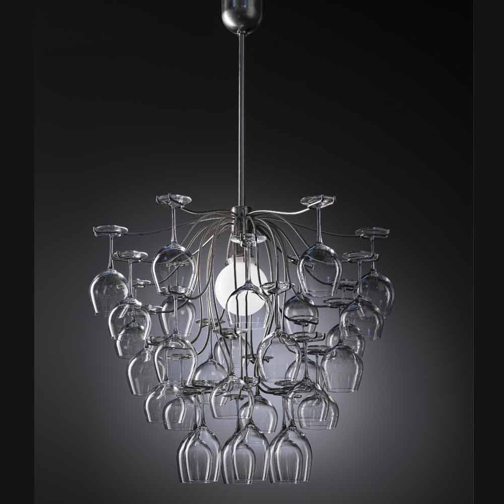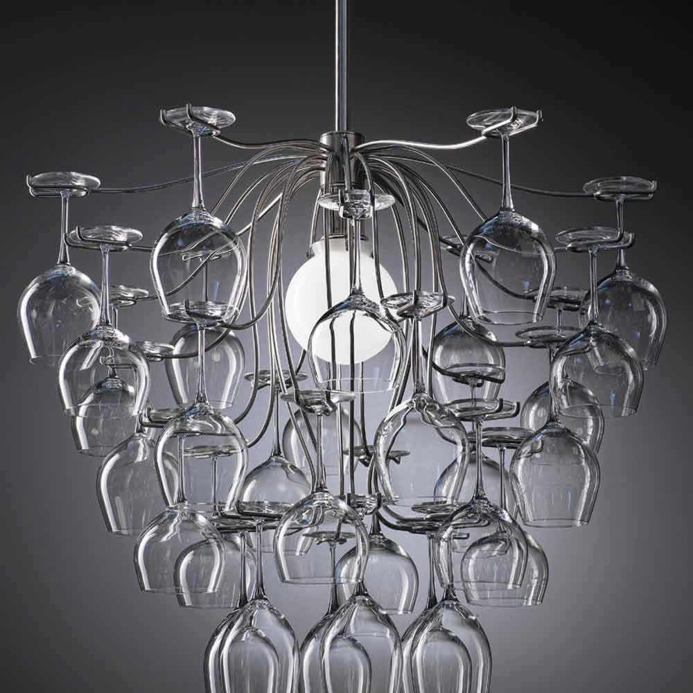Modern design pendant lamp with 30 glasses Sauvignon, made in Italy