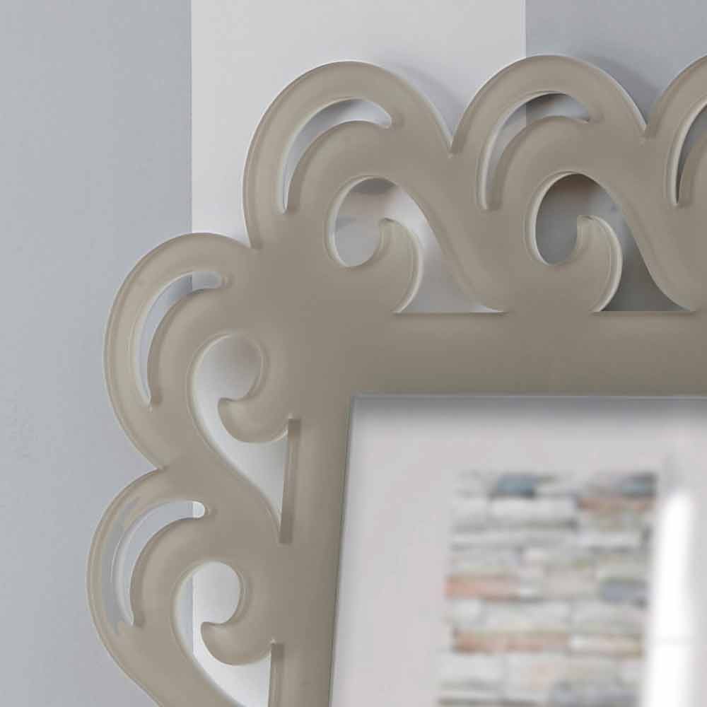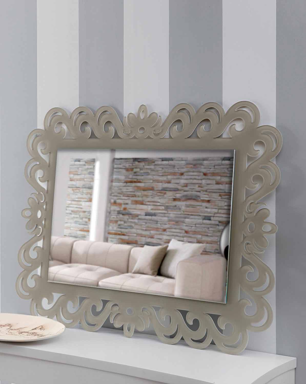 Rectangular wall mirror with floral frame, in dove-grey plexiglass of modern design made in Italy.