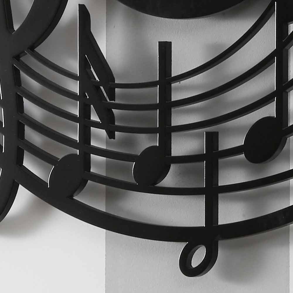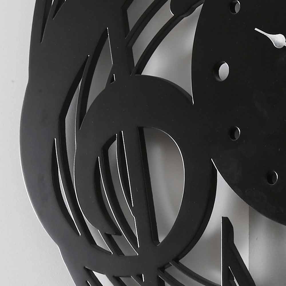Large wall clock, round and modern design with musical notes in black wood and made in Italy.
