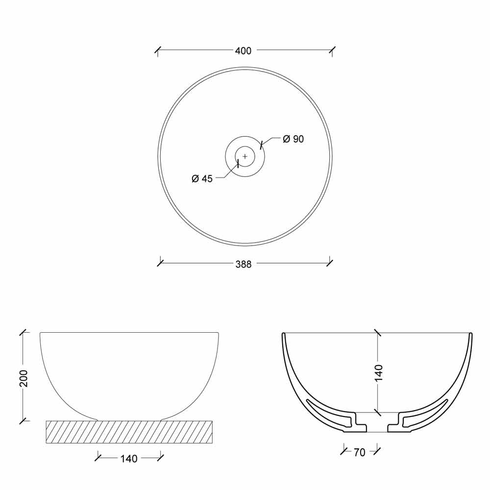 NB: Free discharge ceramic drain included, tap excluded.