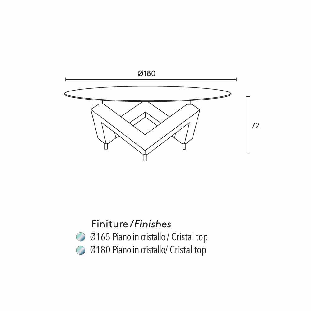 Round wooden dining table with Bao crystal top, modern design, made in Italy