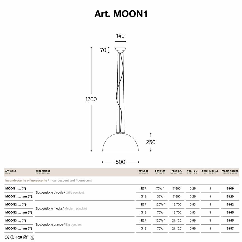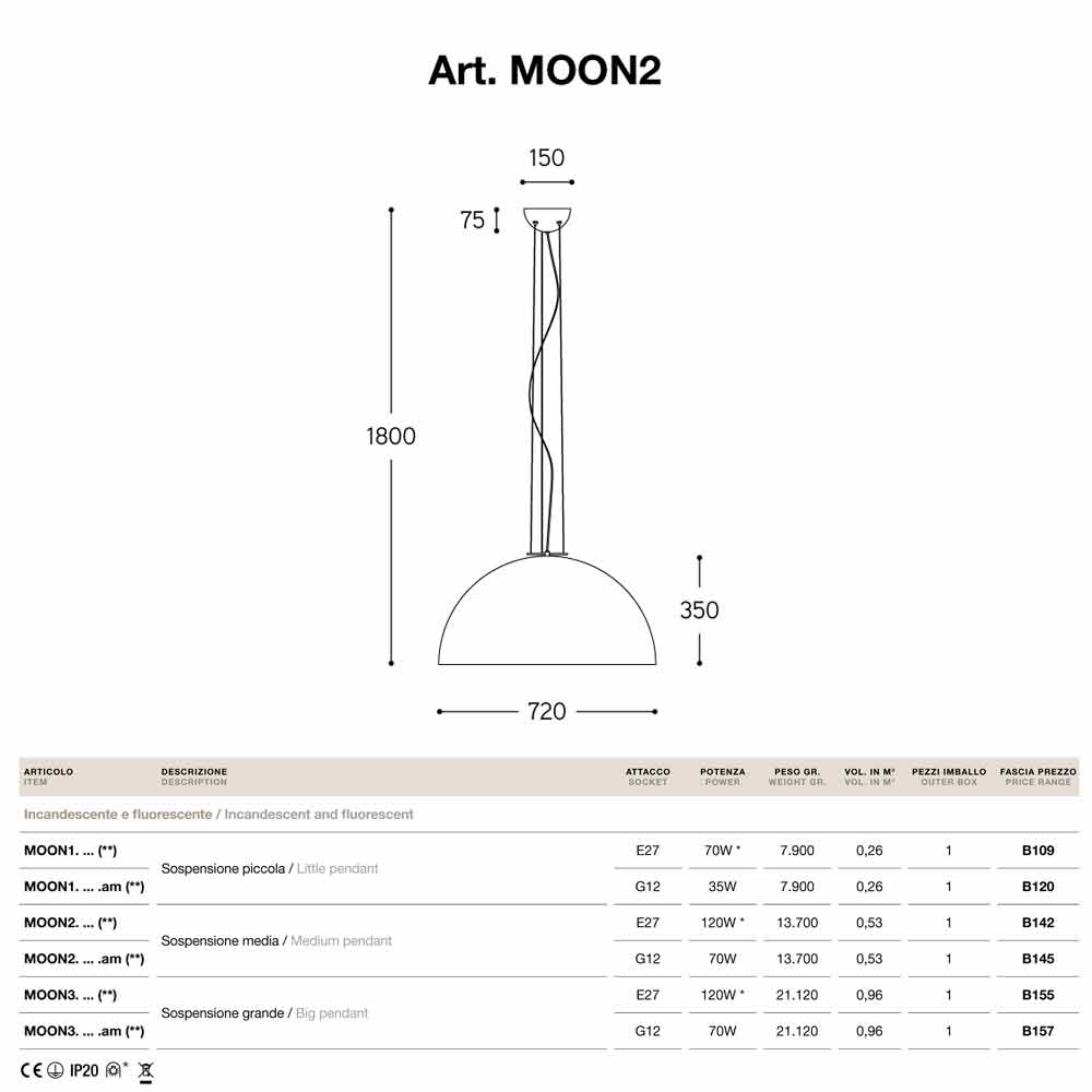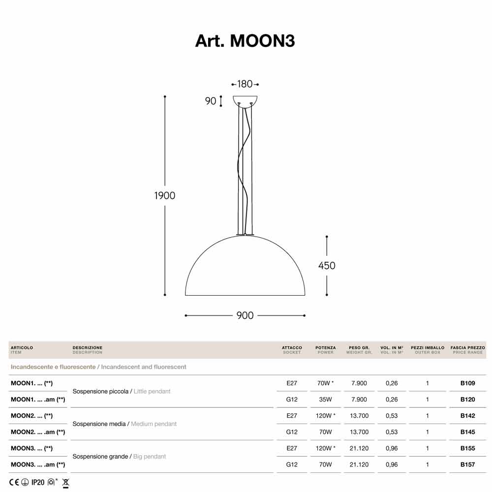 Modern design steel pendant lamp Moonlight by Aldo Bernardi, IP 20.