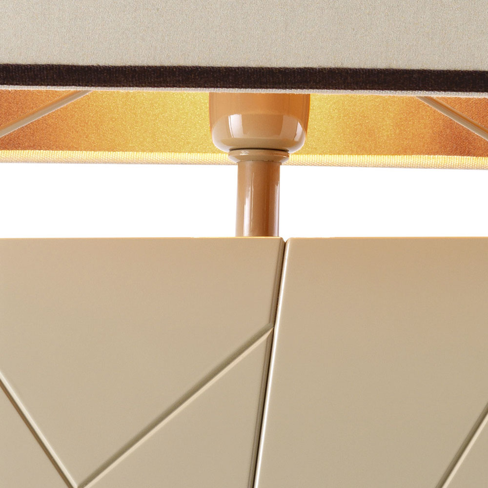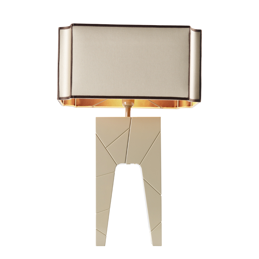 The Zarafa lamp has a solid lacquered solid wood structure, chosen between two beige and black colours with a fabric hat.
