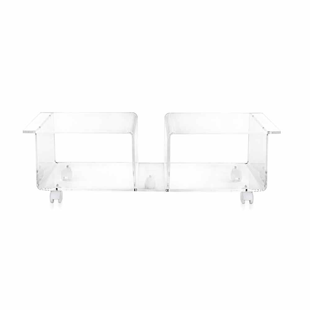 Mago is a multifunctional TV set holder, CD, books and magazines shelf,  made of 10mm thick PMMA in 100% virgin plexiglas, CD, books and magazines shelf. It can be used also for tablets, mobile phones and pc. Mago has 4 wheels and can be carried anywhere in the house.