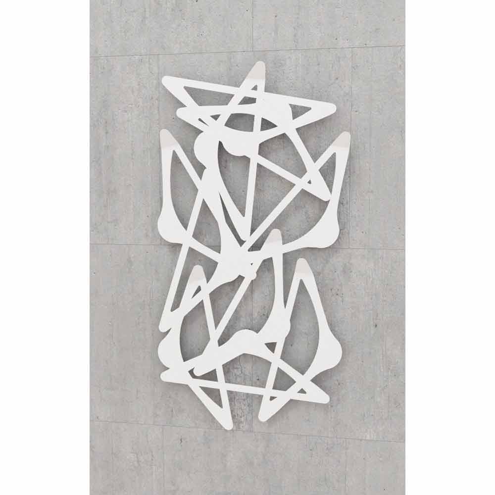 Mess to clean up. If not between words, at least among jackets and coats. Blabla is a funny coat hanger made of laser-cut metal, shaped like a chaotic and messy stylised hanger. It is available in the colours white, red, black, orange and green.