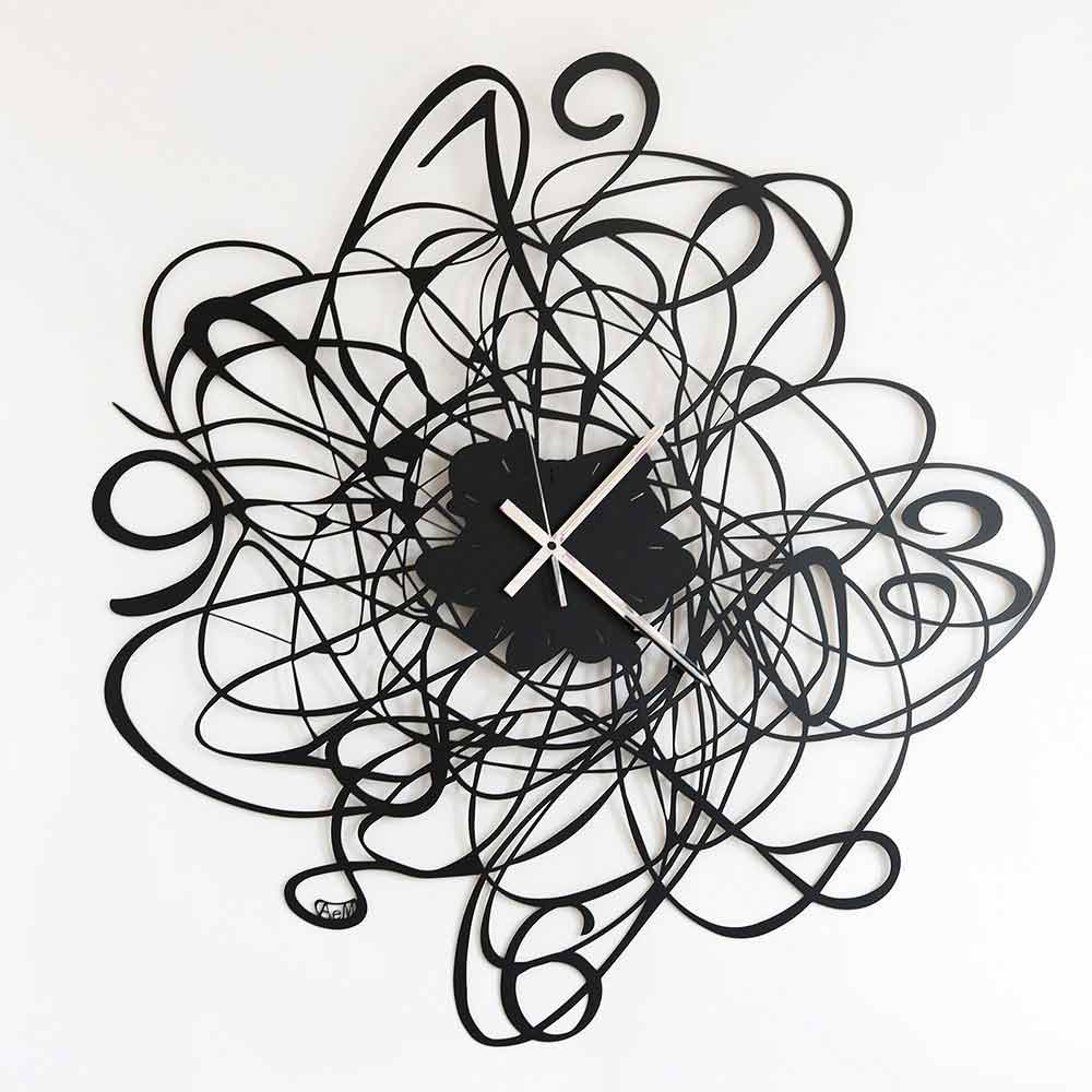 Modern design wall clock in black or white painted iron handcrafted in Italy.