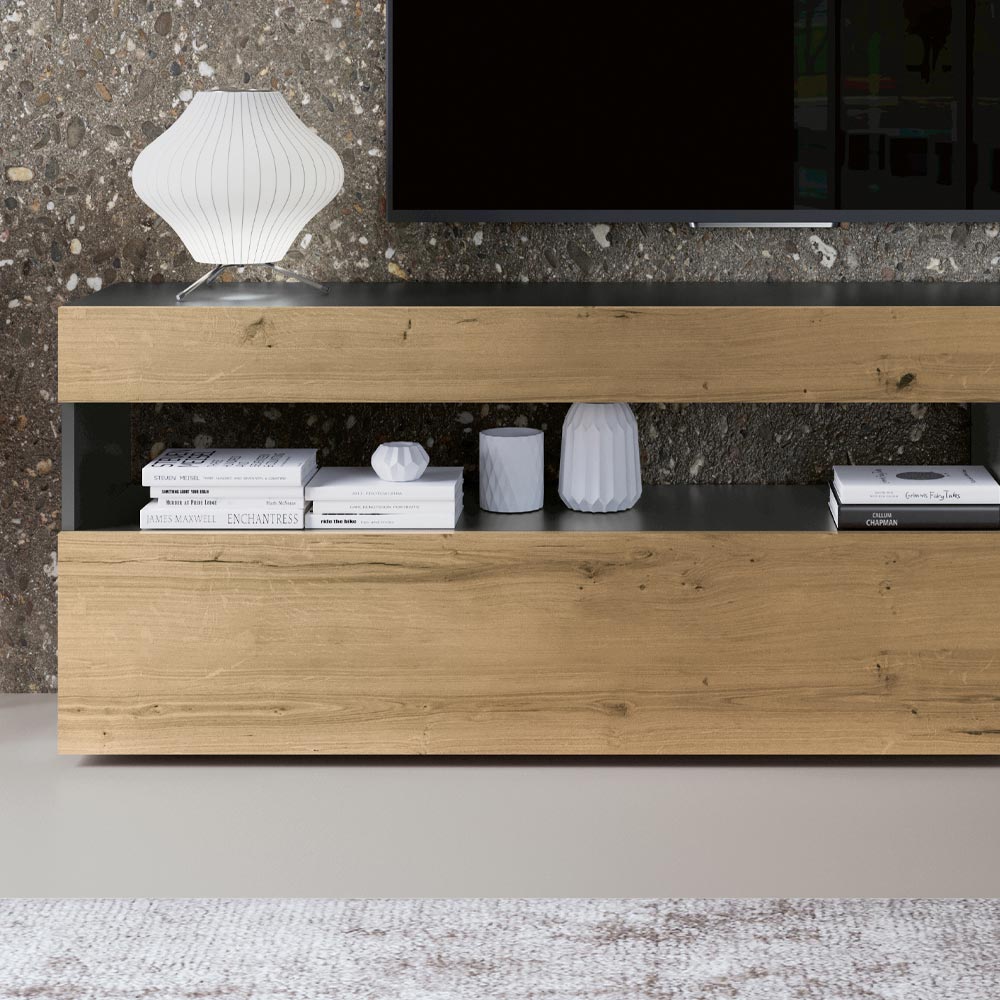 - wall unit with oak drawer, NORDIC KNOTTED OAK + CHARCOAL finish, MDF shell, drawers in knotted oak blockboard