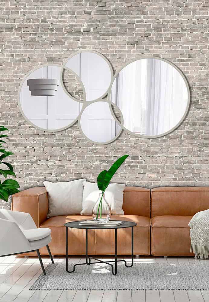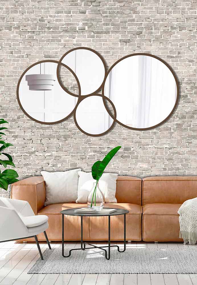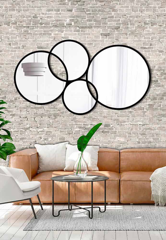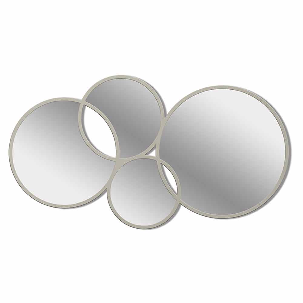 wall mirror is composed of four round mirrors that intersect with elegant queues and modern shapes combined with a refined lacquered finish for a result with a minimal and decorative aesthetic impact, in a unique style.