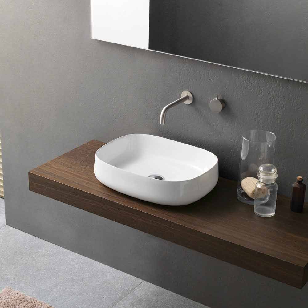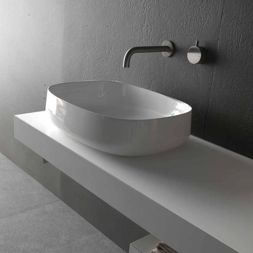 Modern countertop washbasin, white ceramic design, made in Italy.