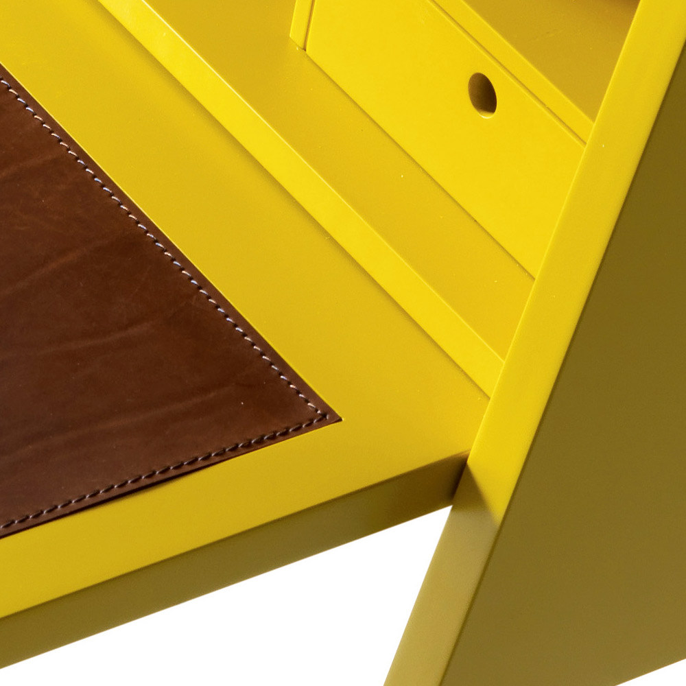 Modern design writing desk with a lacquered wood structure in RAL colours.