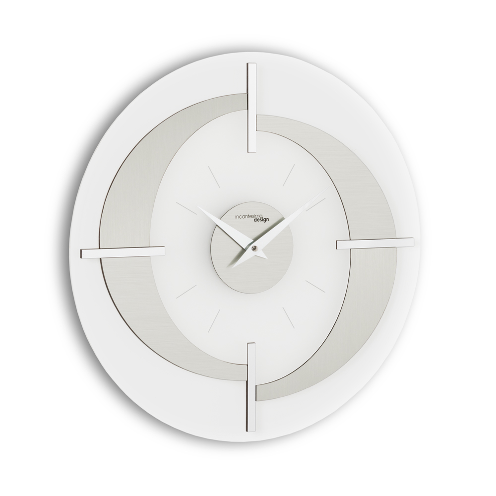 The Giove clock is an expression of proportion and harmony in form, with a sober design, but of exquisite elegance. The reading of the dial is clear and perceptible at first glance; the contrast between the transparent and satin materials used is original and ingenious. Giove adapts to any type of contemporary furnishing, giving a touch of refinement.