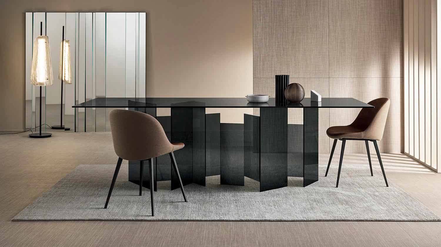 - top and base in smoked glass (top thickness 12mm).