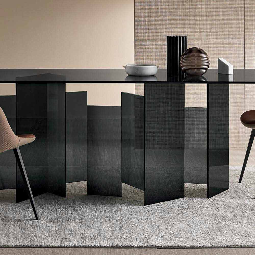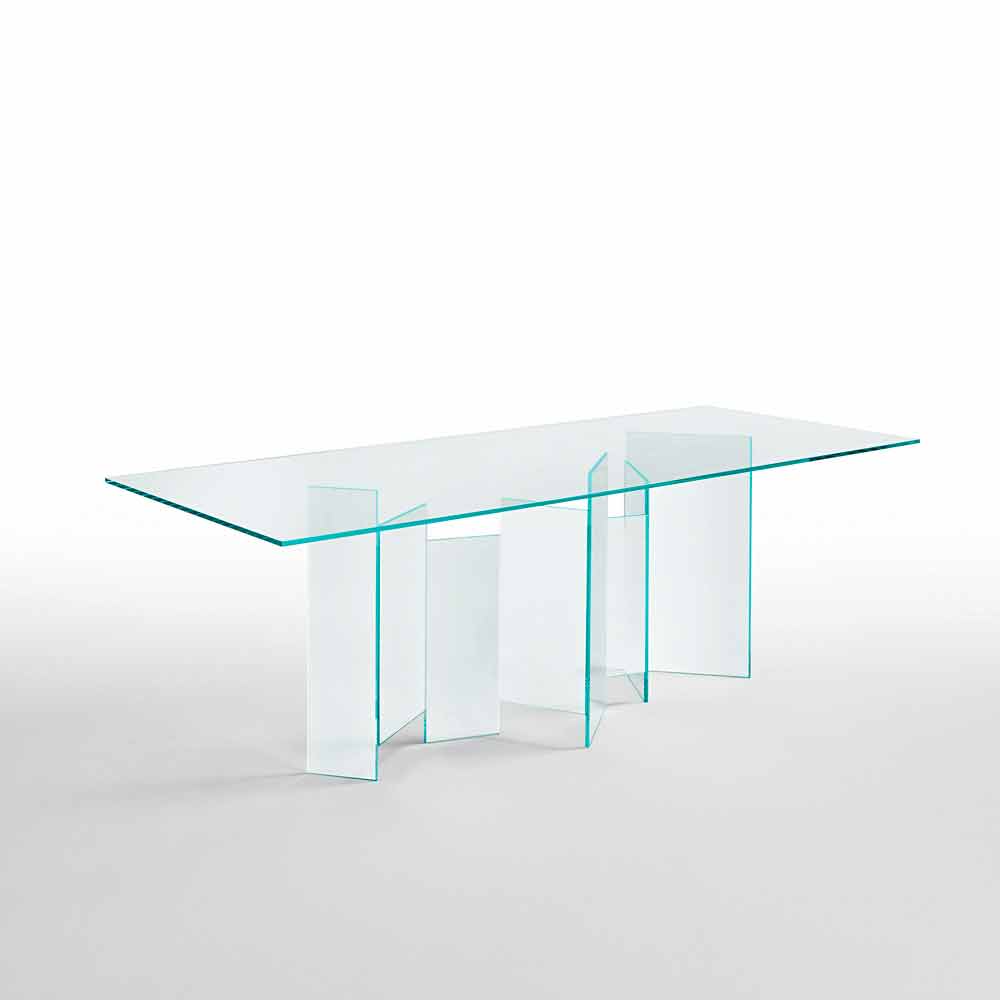 Modern design dining table in extra-clear or smoked glass, made in Italy.