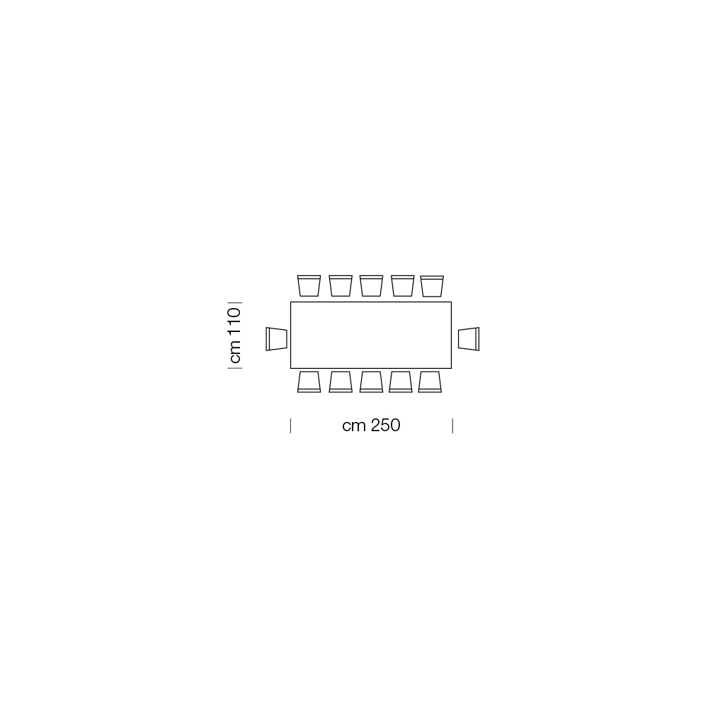 white lacquered steel base. Measures- L 250 x D 110 x H 75 cm 12 seats