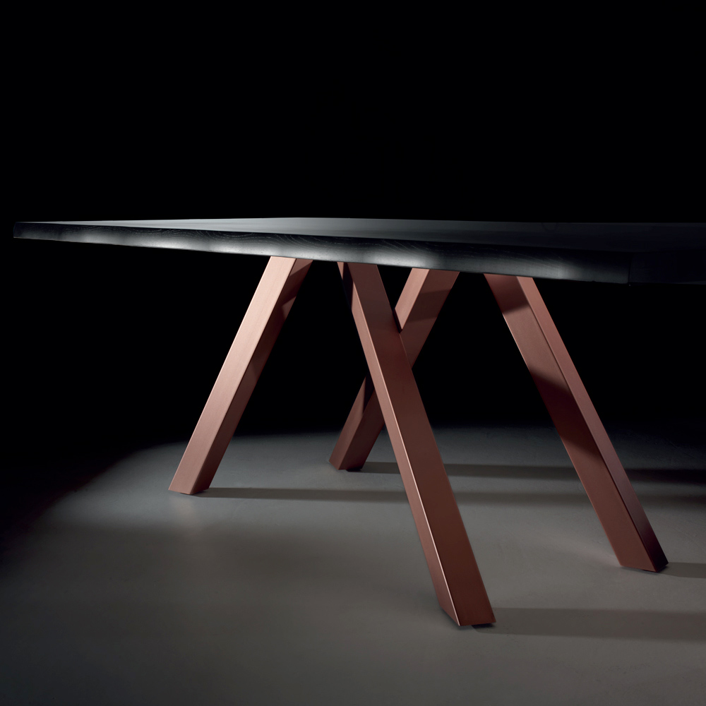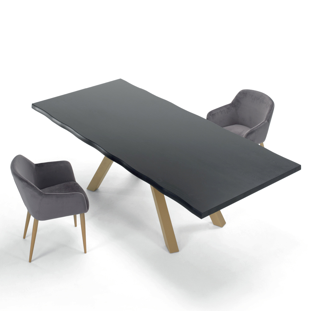 Modern kitchen table with top in veneered wood and base in gold, rose gold or graphite steel made in Italy.