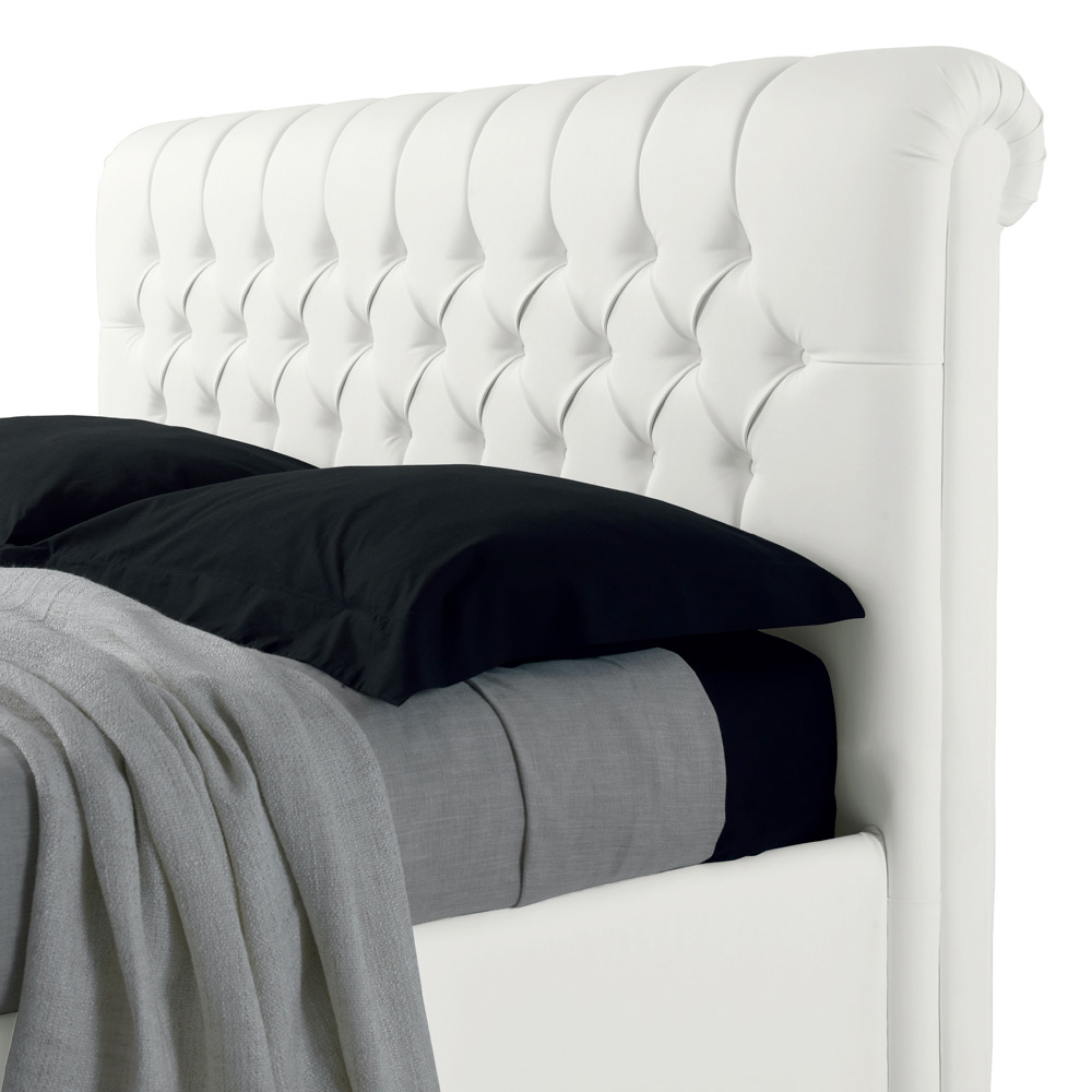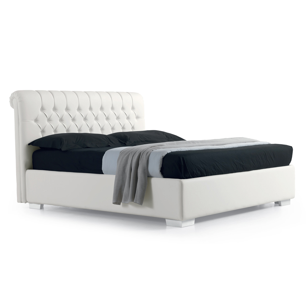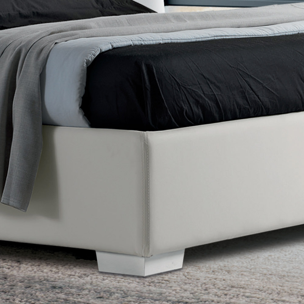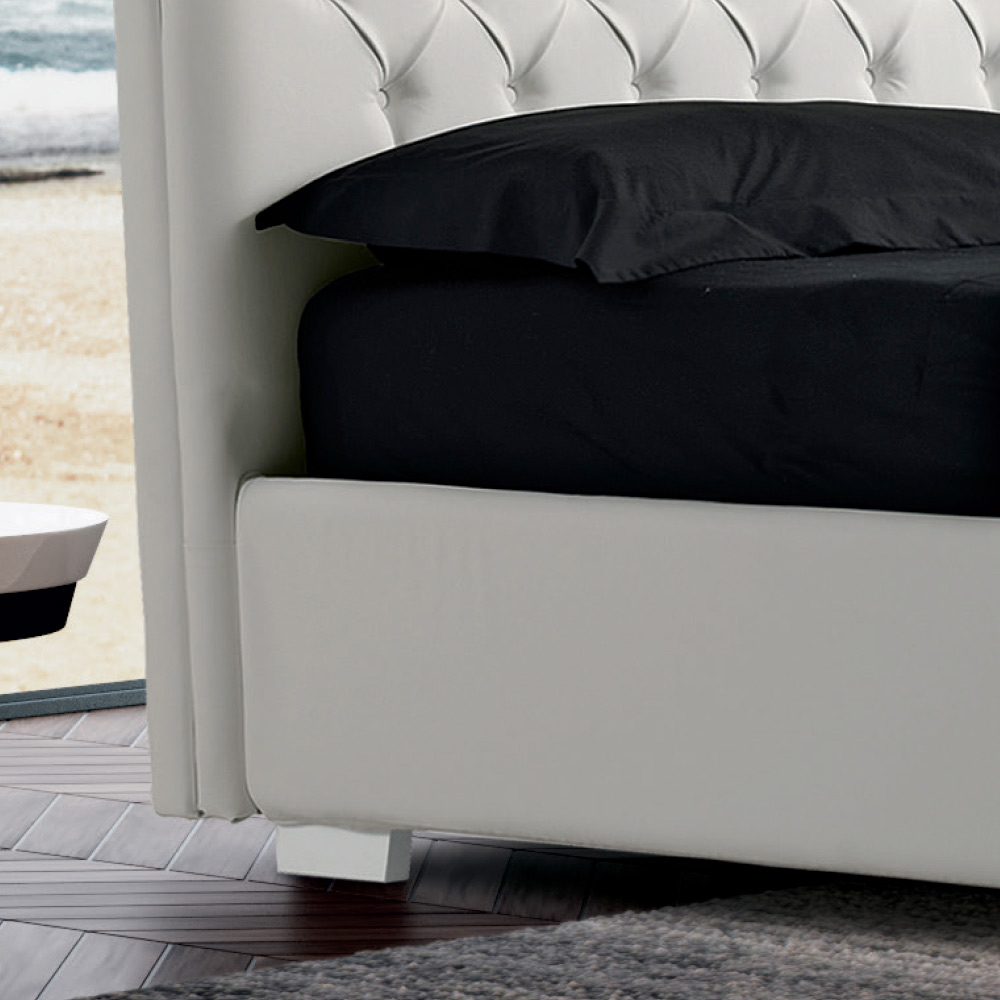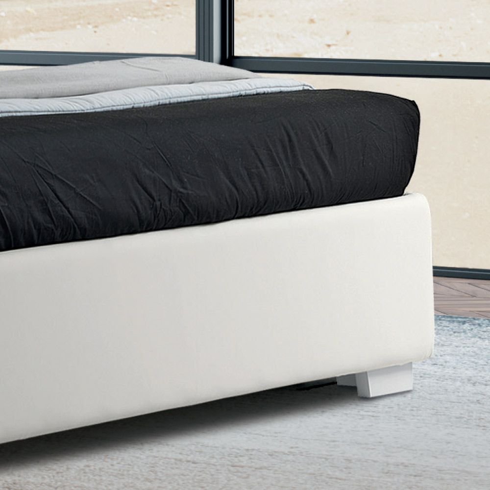 Upholstered double bed covered in eco-leather, with storage box, made in Italy.