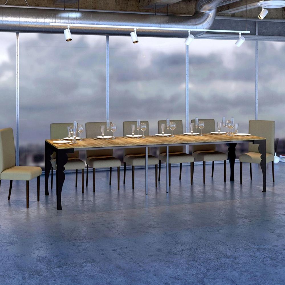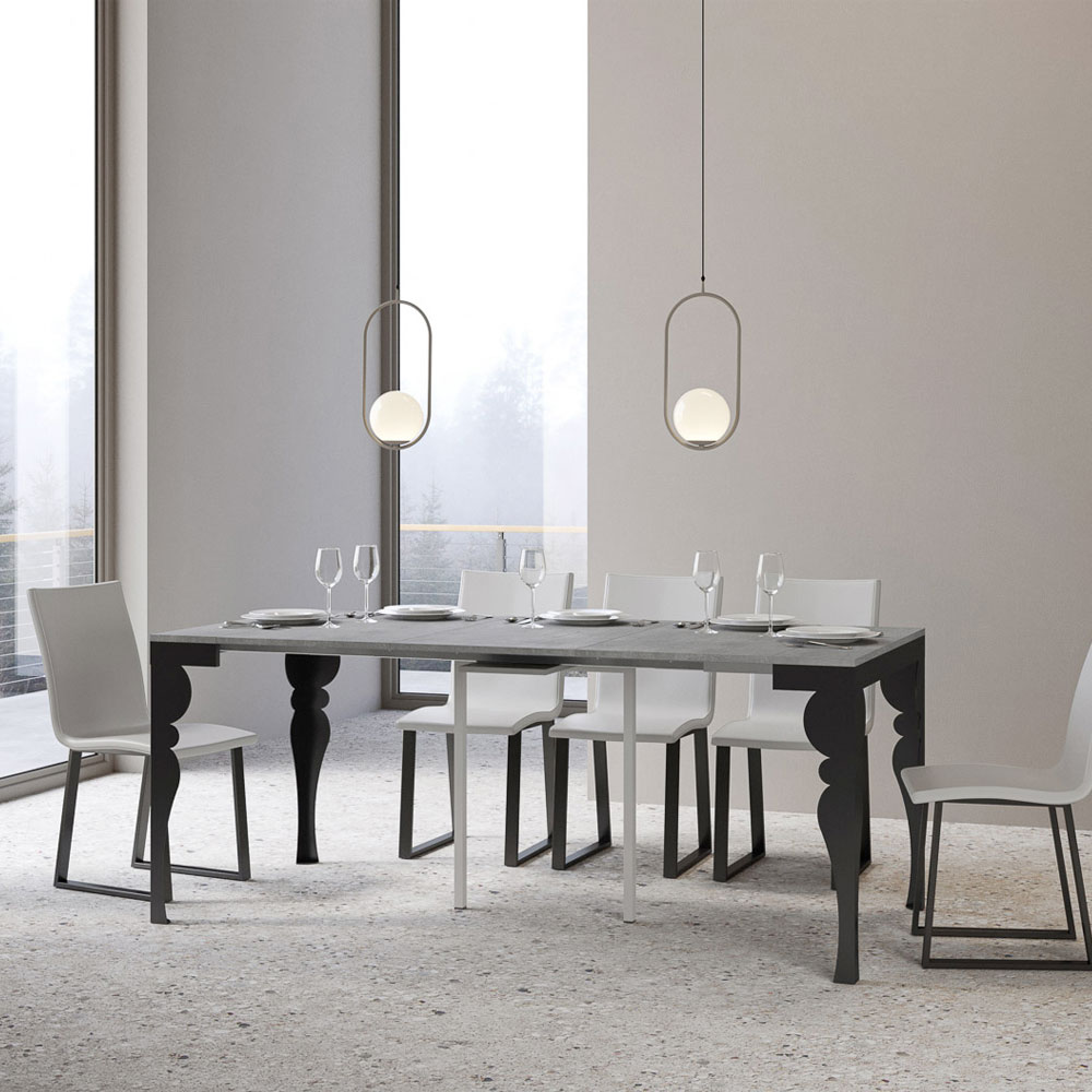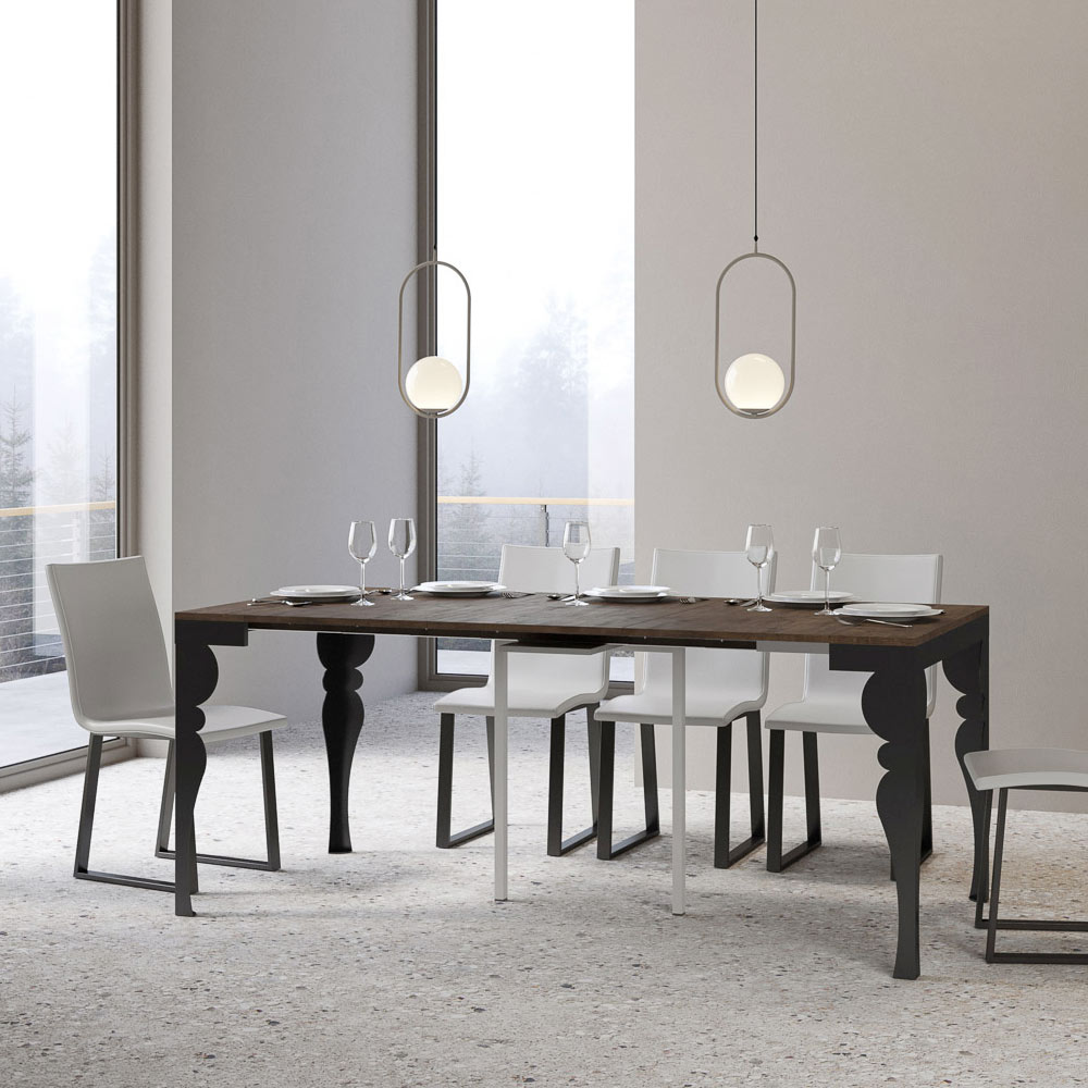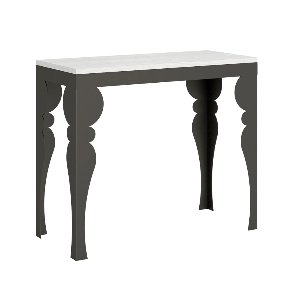The contrast between the anthracite gray of the legs and the wood of the top creates a visually stimulating dialogue, making this piece of furniture a sophisticated choice for any room. Perfect as entrance furniture or as an additional surface in a lounge, the console table transforms with ease, extending to become the centerpiece of a dining room, ready to host memorable moments.