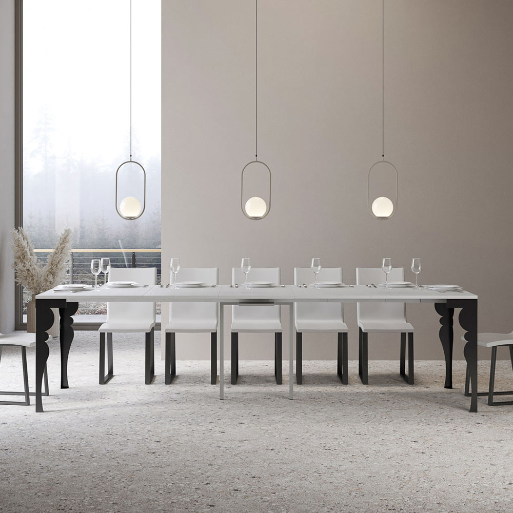 This extendable console table represents a sublime fusion of elegance and ingenuity. With its carved legs that bring to mind the grace of bygone eras, the console table presents itself as a design object that combines history and modernity.