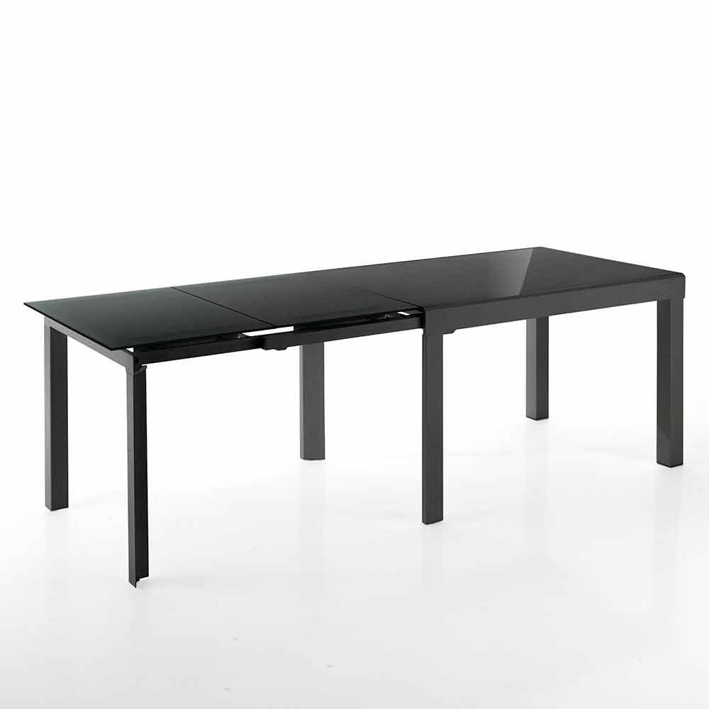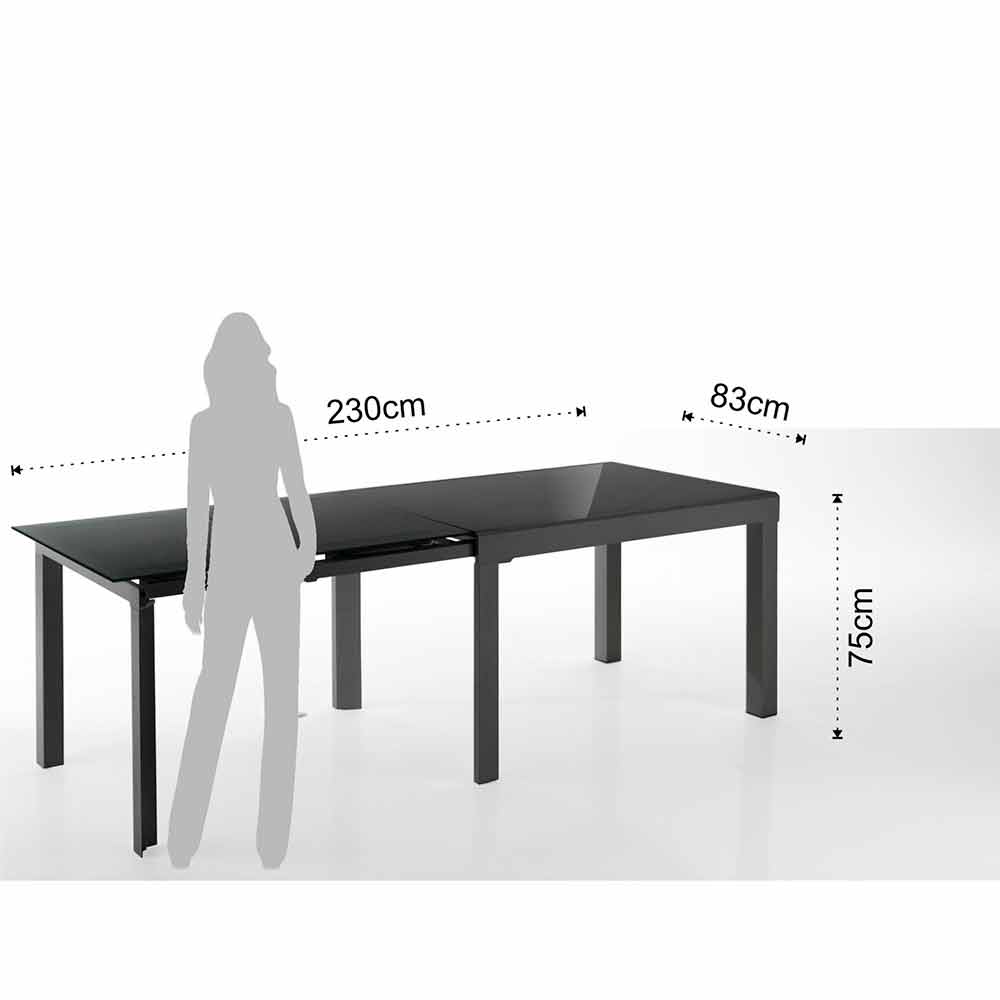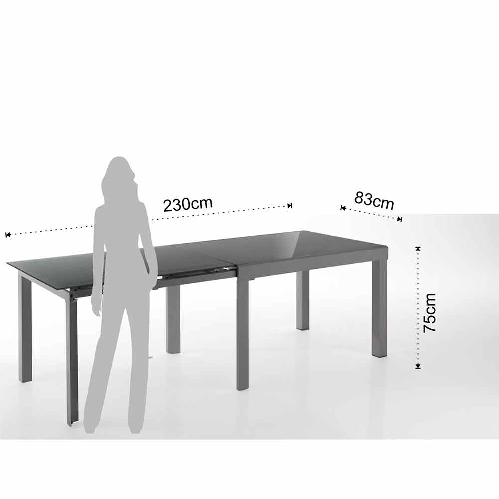 a tempered glass top (8 mm thick) and a painted metal base , available in three different finishes: