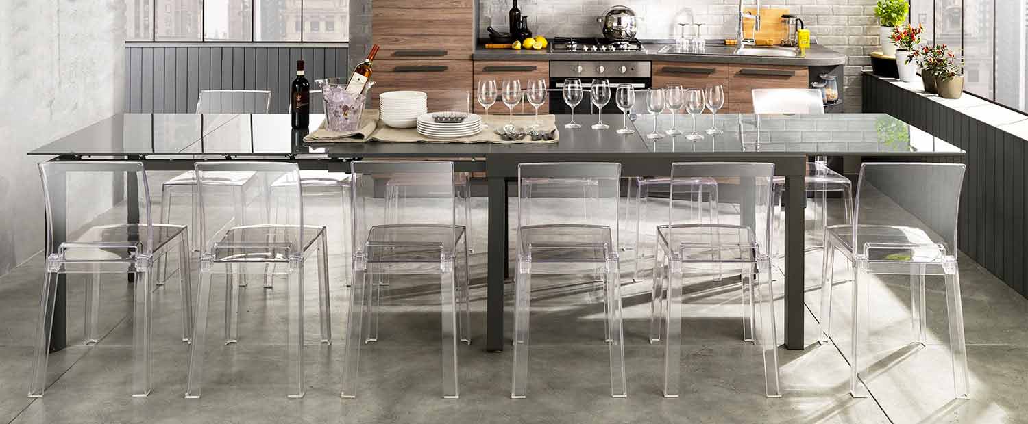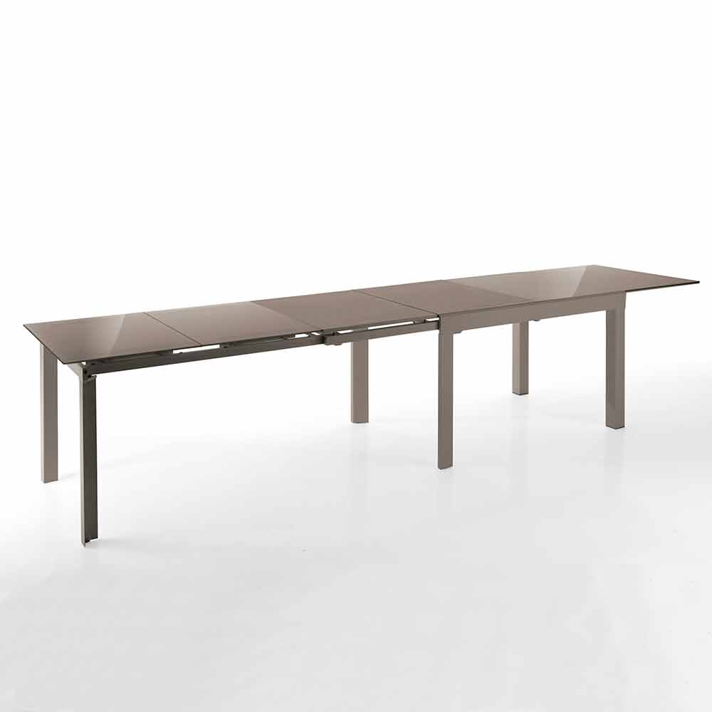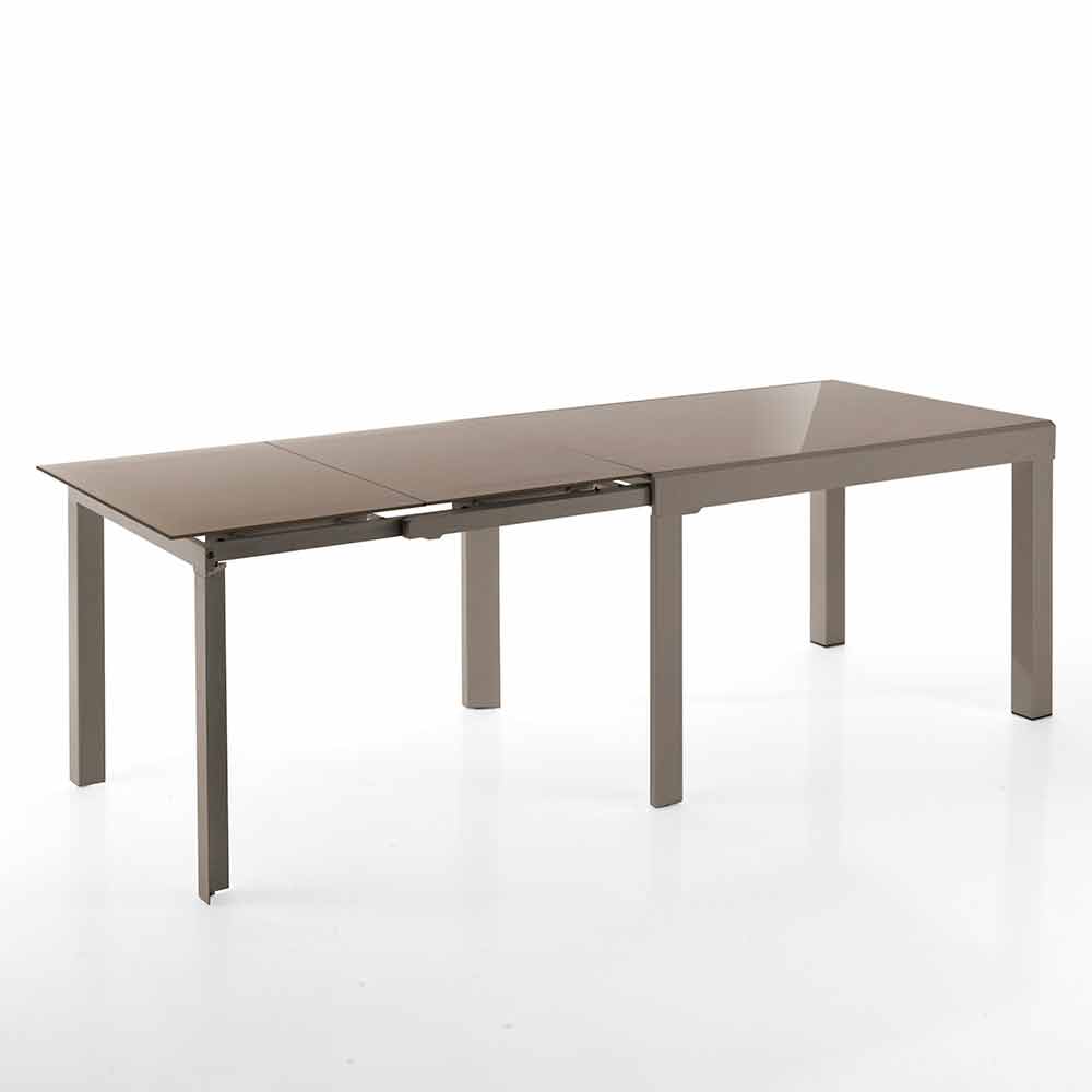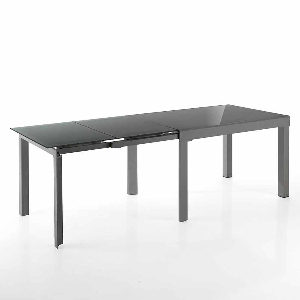 a tempered glass top (8 mm thick) and a painted metal base , available in three different finishes: