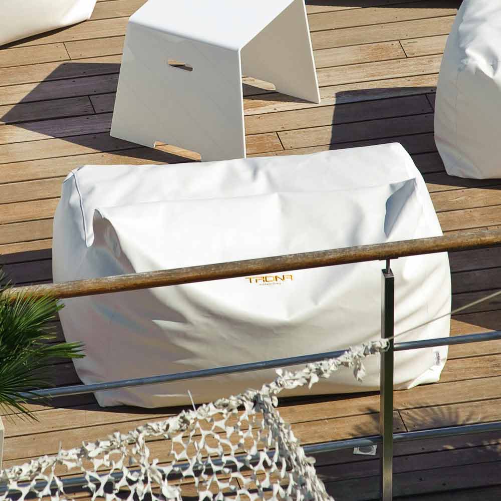 The poolside sofa Cloud has a comfortable seat which perfectly fits with your body and it is covered with soft eco-friendly nautica faux leather. This kind of coating is certified for outdoors and it is stain-resistant, anti-humidity, removable, easily washable, water-resistant and fireproof. It is completely cutted and hand-sewn in Italy.