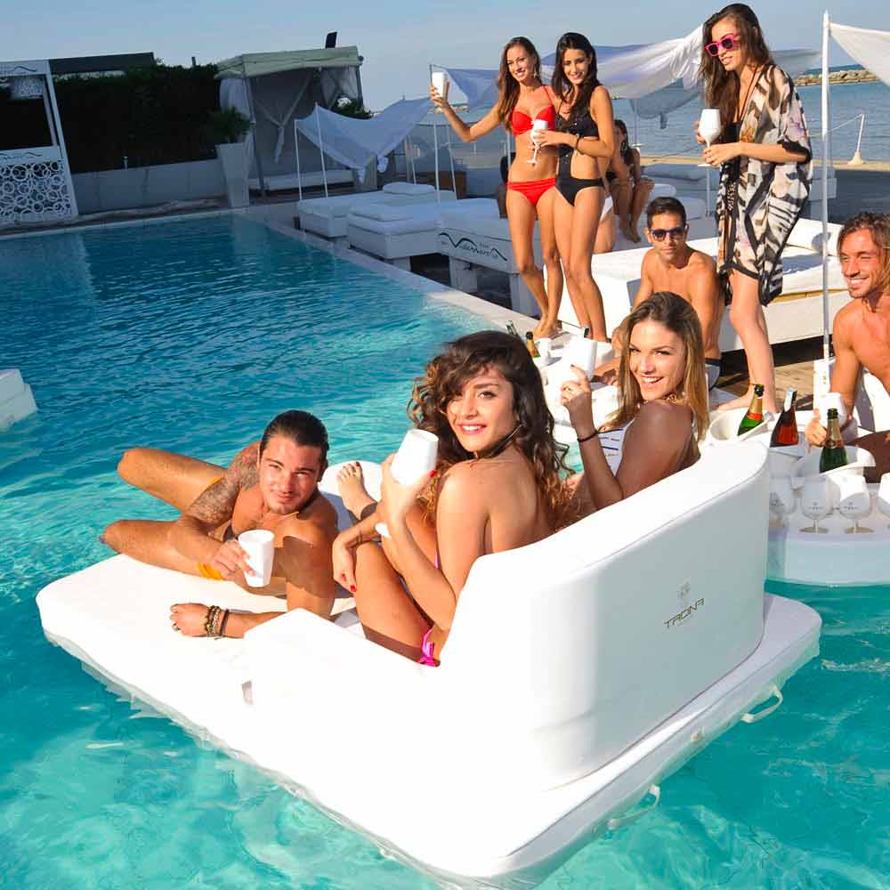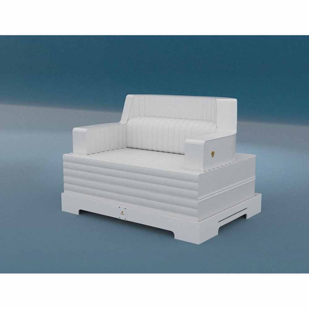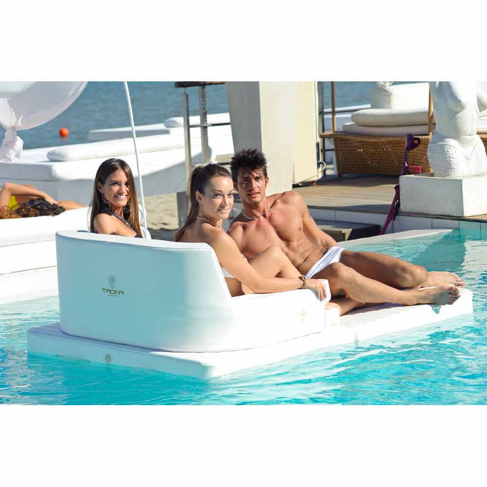 Magnum Luxury is a unique double-seat armchair for the whole family, which can be used both as a poolside armchair and a floating pool lounger. TRONA MAGNUM Armchair is a Design double-seat for the whole family. With Mangum you can realx yourself floating safely on the water surface. It is made of white eco-friendly nautica faux leather and EPS. This kind of faux leather is designed for outdoors and it is certified, water-resistant and fireproof. The outdoor chair Magnum Luxury is completely cutted and hand-sewn in Italy.