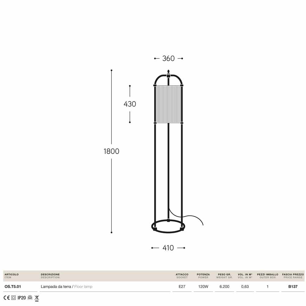 Modern floor lamp Huà Hikà made of brass and fabric, handcrafted in Italy