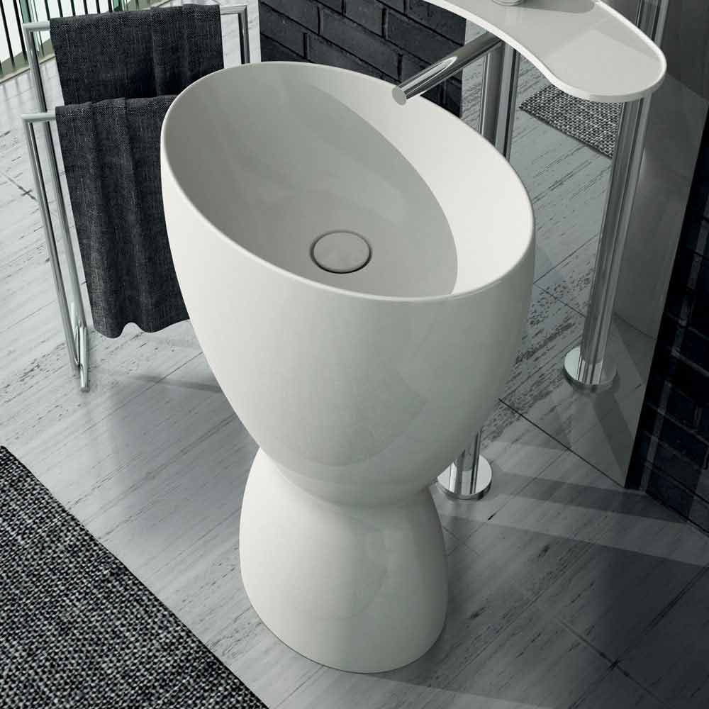 Design freestanding bathroom sink in pottery made in Italy, Basile