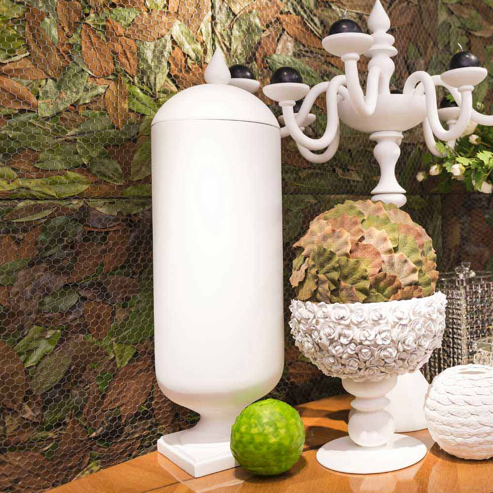 Modern vase for interiors in opaque white ceramic handmade through a 100% Made in Italy production . A design punctuated by various and simple geometric shapes that give life to a unique complement characterized by a refined minimalism ideal for those who love to furnish in an essential way but with personality and character . The craftsmanship underlines its value and is marked by precision, passion and love for tradition. The result is an idea of exclusive furniture ideal for the most varied environments, from home furnishings to that of hotels, restaurants, contract areas, spas but also as a setting for events and weddings.