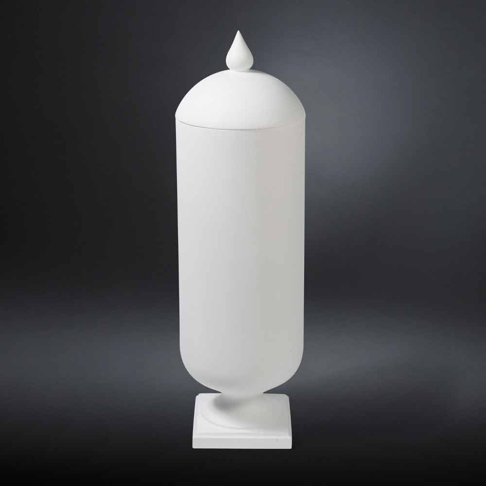 Decorative vase in opaque white ceramic handcrafted in Italy.