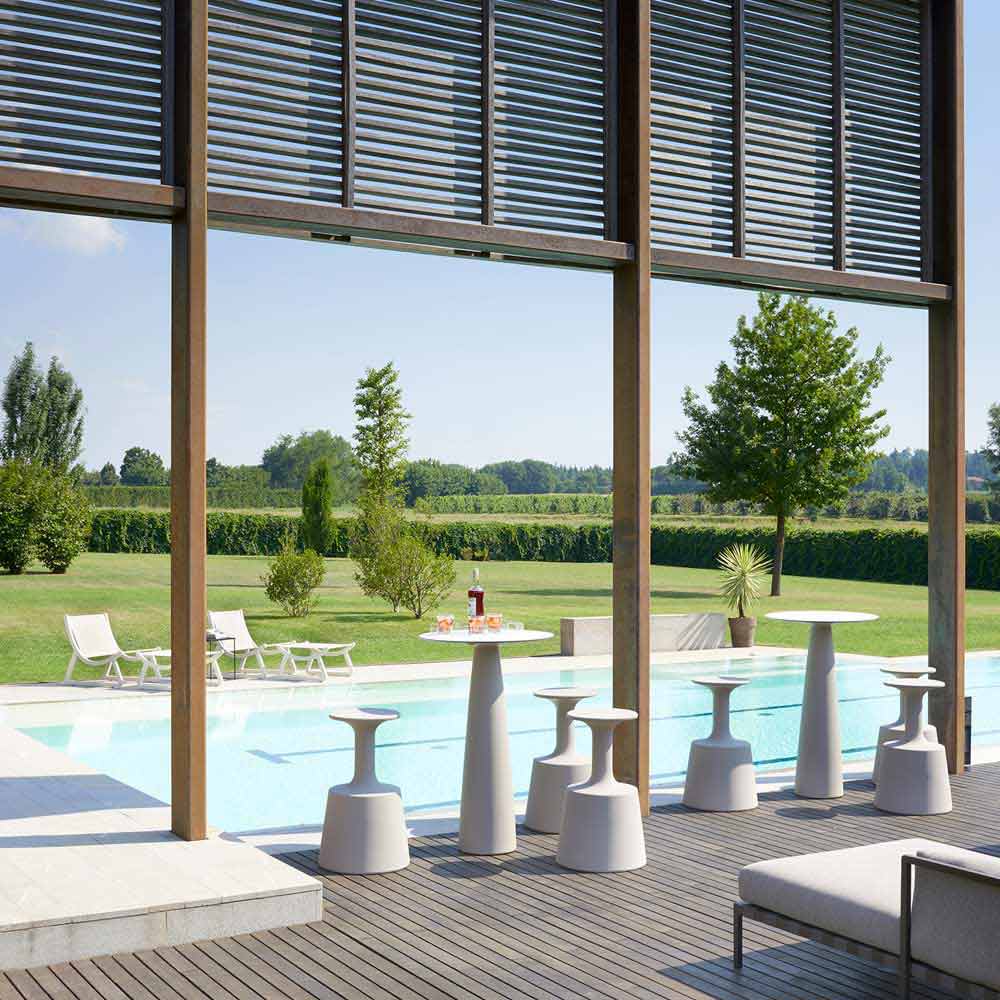 Its shape recalls that of a glass and is suitable for furnishing both indoor and outdoor spaces, both domestic and non-domestic, for a touch of originality that is ideal for escaping from traditional schemes.