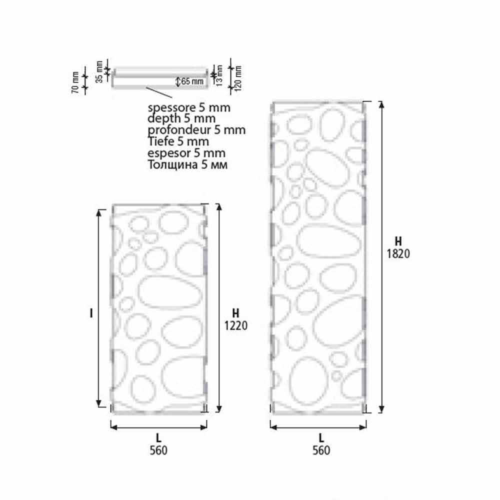 Modern vertical design wall-mounted radiator in steel and methacrylate, made in Italy.