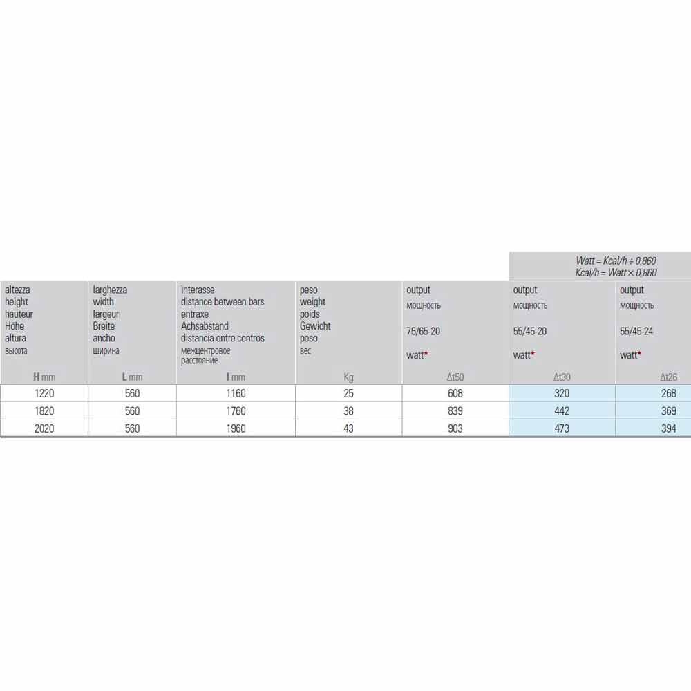 - H 1820 x L 560 x Inter. 1760 mm x Output w (Īt50 *) 839; Yield w (Īt30 *) 442; Yield w (Īt26 *) 369
