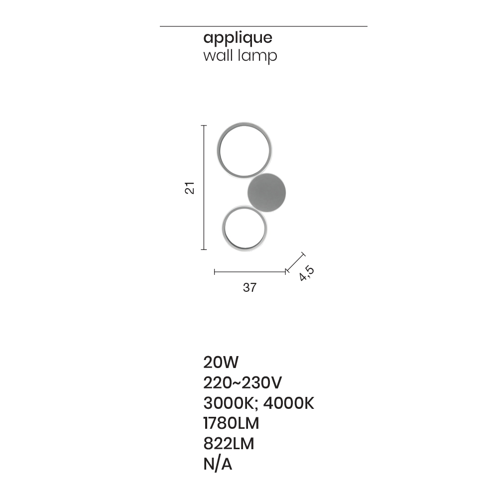 Elegance and originality come together in a modern composition made up of three circles of different sizes joined together and covered on the outside by a milky white diffuser which encloses the LED strip, creating wonderful light effects on the walls for a result with a