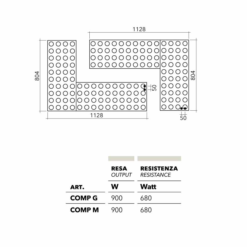Material: - Heating core made of aluminium fins and copper flow and return pipes