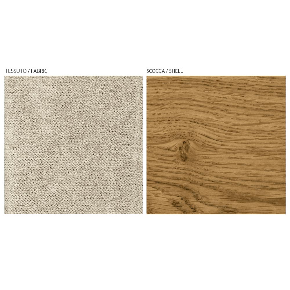 Wooden lounge chair and seat covered in Made in Italy fabric