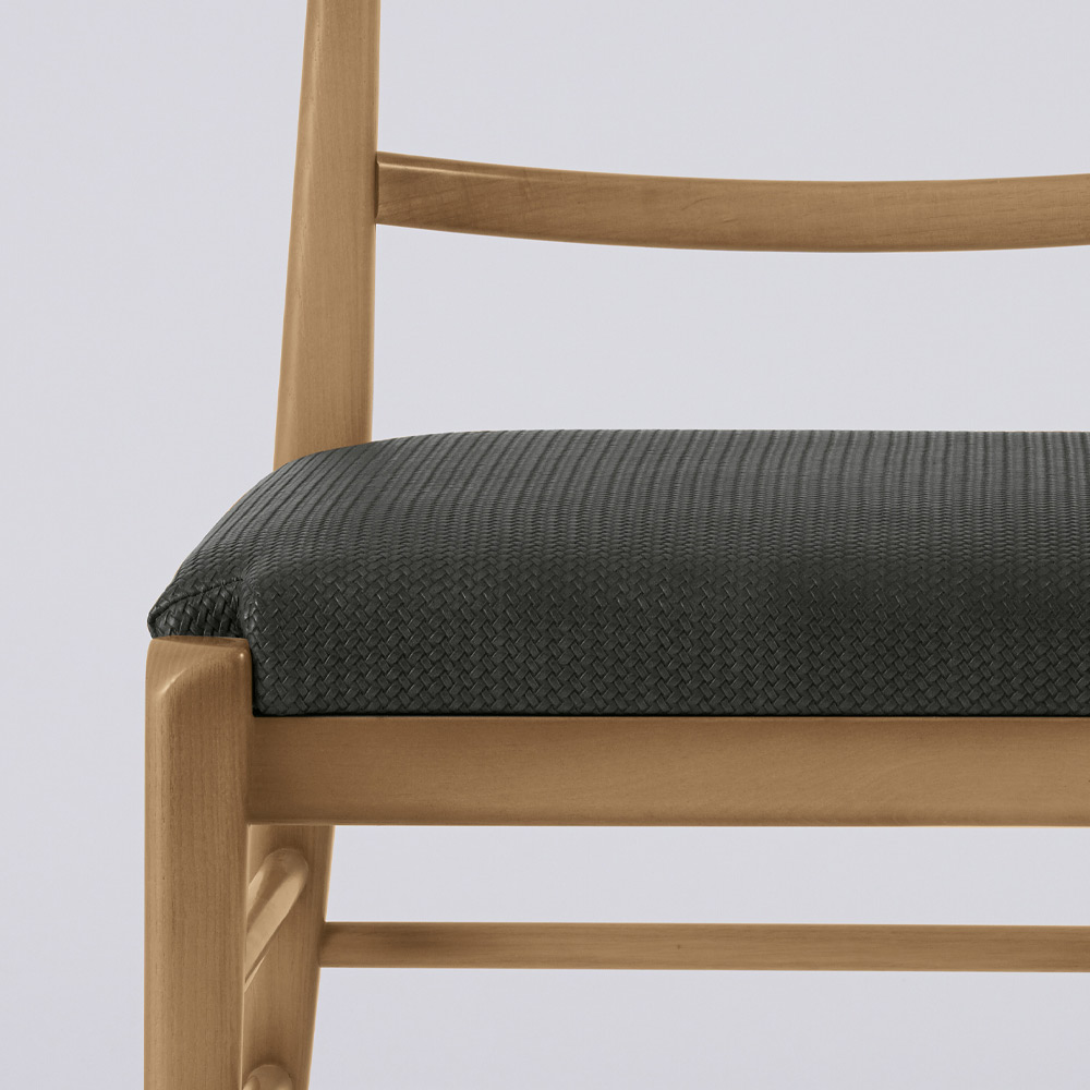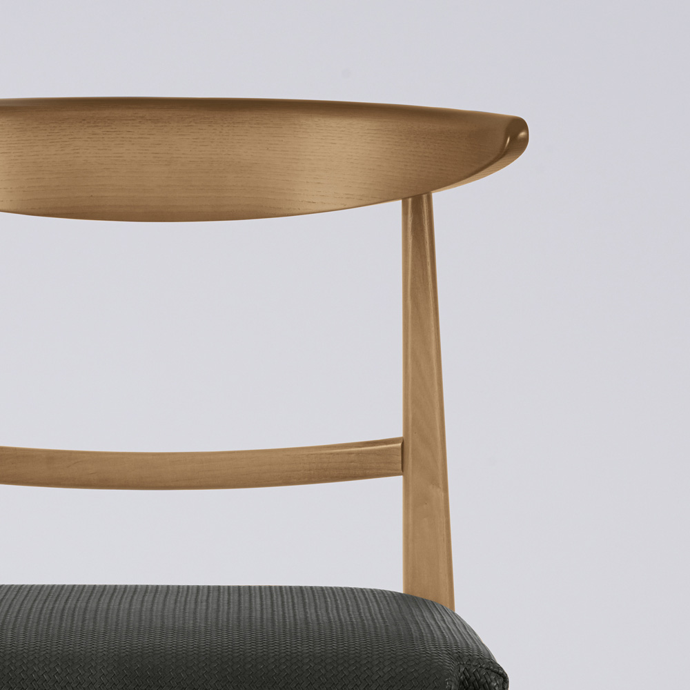 Wooden chair with crosspieces and Made in Italy fabric seat