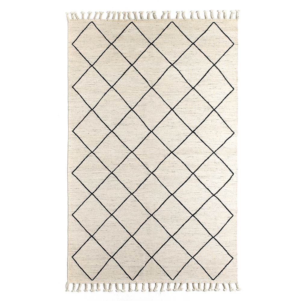 Modern design lounge carpet with geometric pattern in wool and cotton.