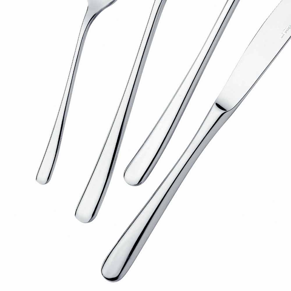 It is a collection of 18/10 stainless steel cutlery, that is with 18% chromium and 10% nickel, which guarantee excellent resistance to corrosion and easy cleaning with an excellent hygienic coefficient.