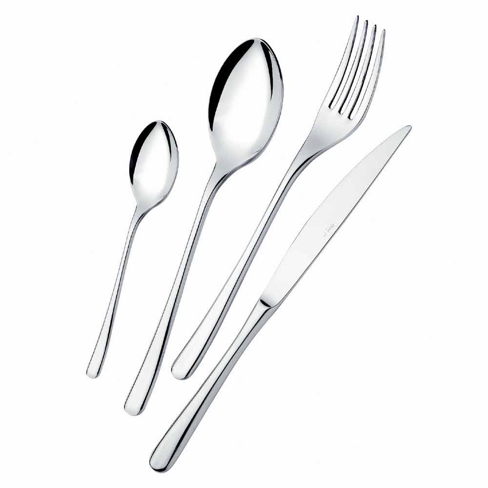 24 modern design stainless steel cutlery with glossy finish, made in Italy.