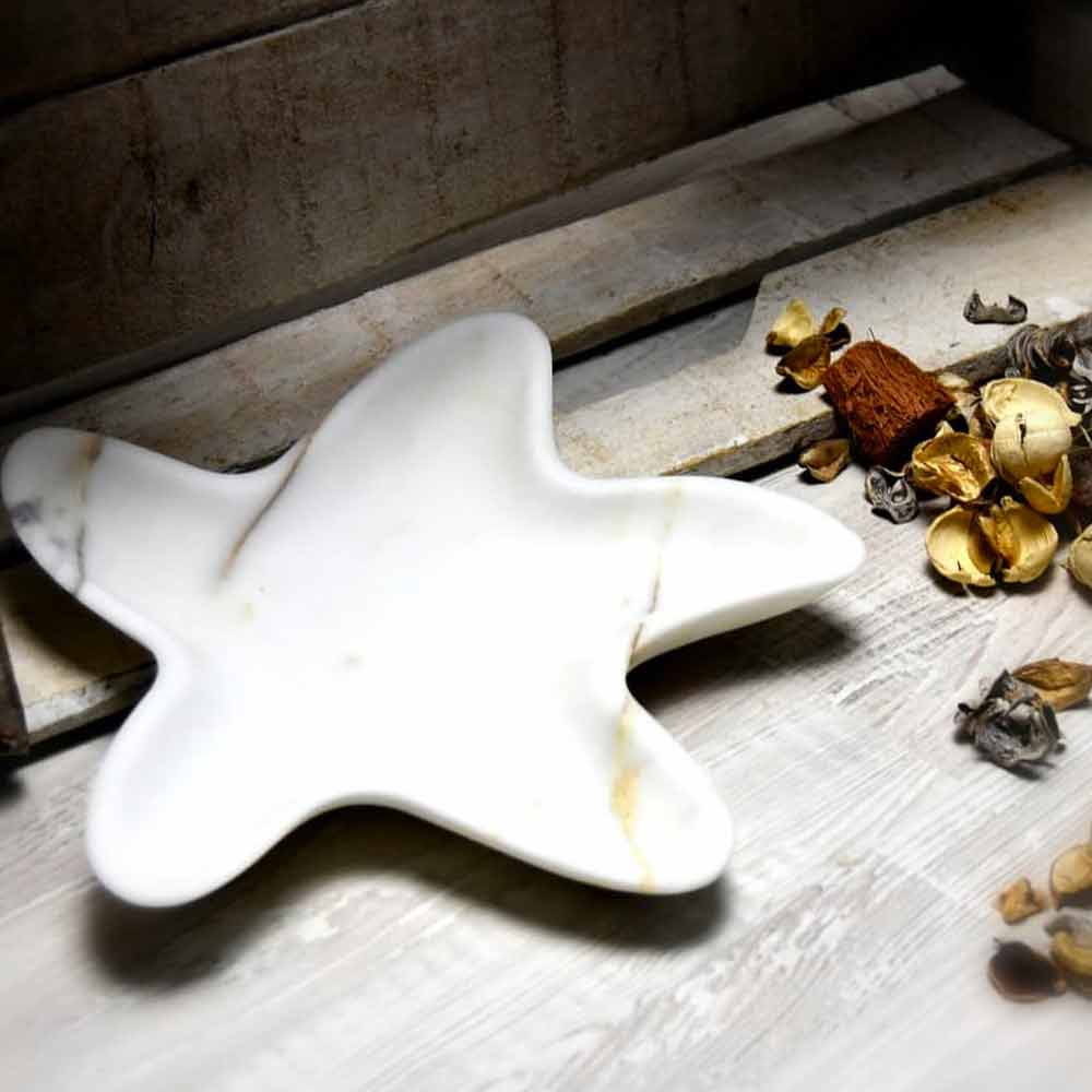 marble with a matte satin finish obtained thanks to an artisan process that gives the product further quality and refinement. What characterises this article is undoubtedly the particular starfish shape which recalls the charm of marine fauna and which, thanks to its
