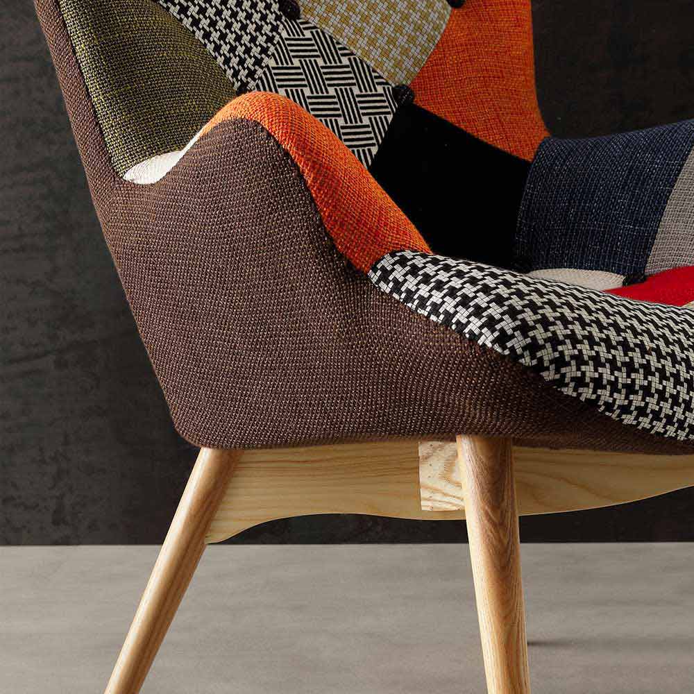 Modern multi coloured patchwork armchairs Veronica, solid wood legs